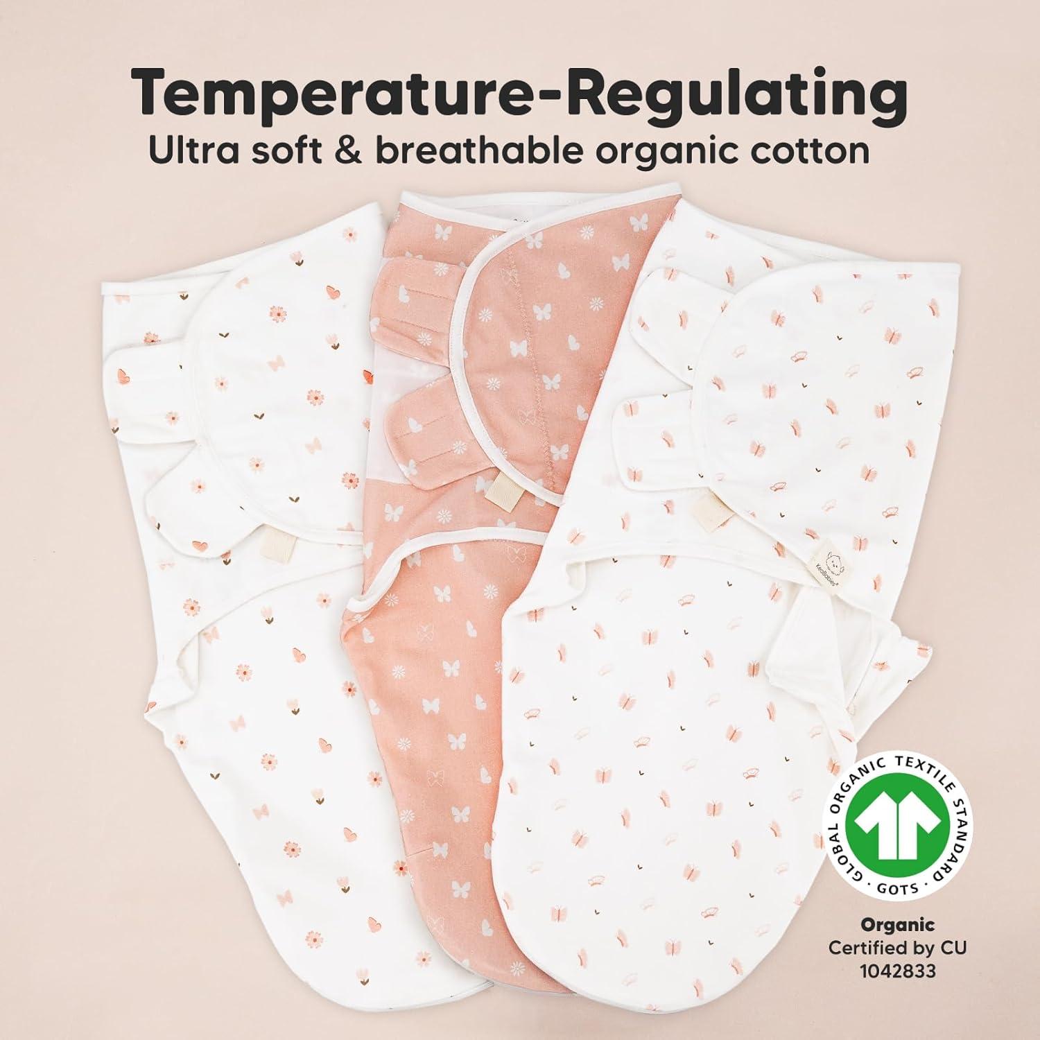 Baby Swaddle Sleep Sacks with Zipper - 3-Pack Swaddles for Newborns 3-6 Months, Infant, Baby Girls, Boys, Soft & Durable Newborn Sleep Sack, Easy Diaper Change Swaddling Blanket (Sage, L)(Butterflies)