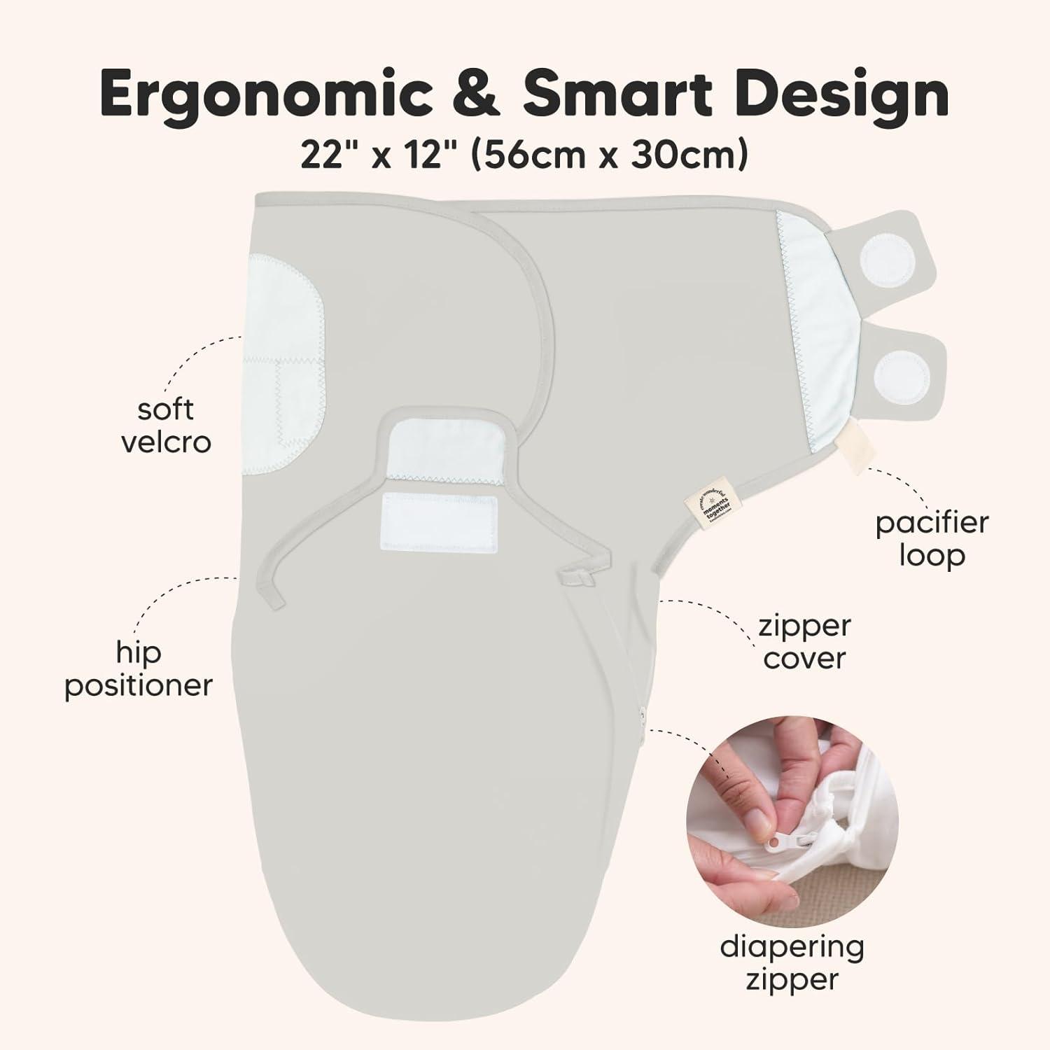 Ergonomic for Newborn Growth – Certified as a hip-healthy product by the International Hip Dysplasia Institute (IHDI), the KeaBabies Soothe Zippy Baby Swaddle Sleep Sack provides ergonomic support for an infant's healthy hip development.