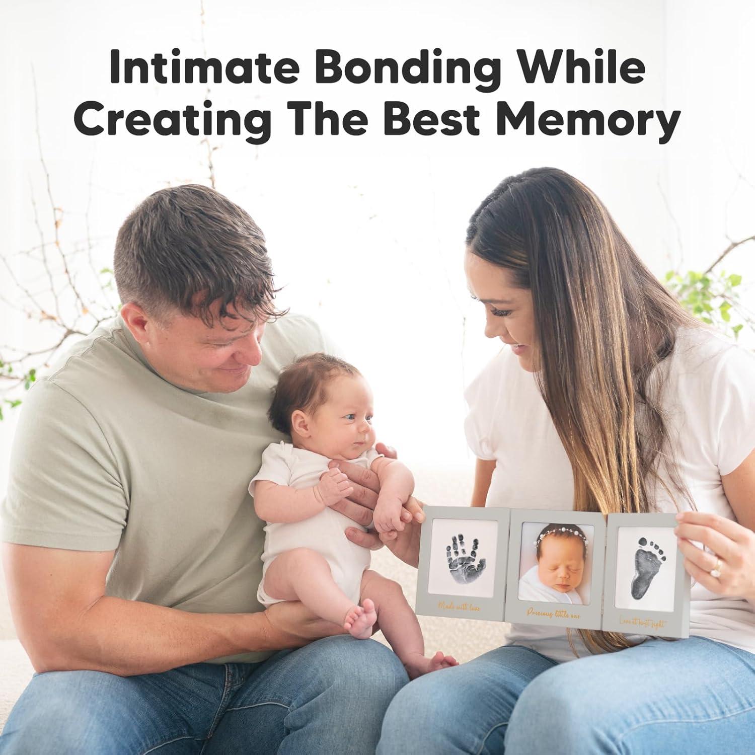 Inkless Baby Handprint and Footprint Kit for Newborn - Baby Footprint Kit, Newborn Keepsake Nursery Picture Frame,Dog Paw Print Maker,Personalized Gifts for New Mom,Showers & Registry(Petal Pink/Gold)(Cloud Gray/Gold)