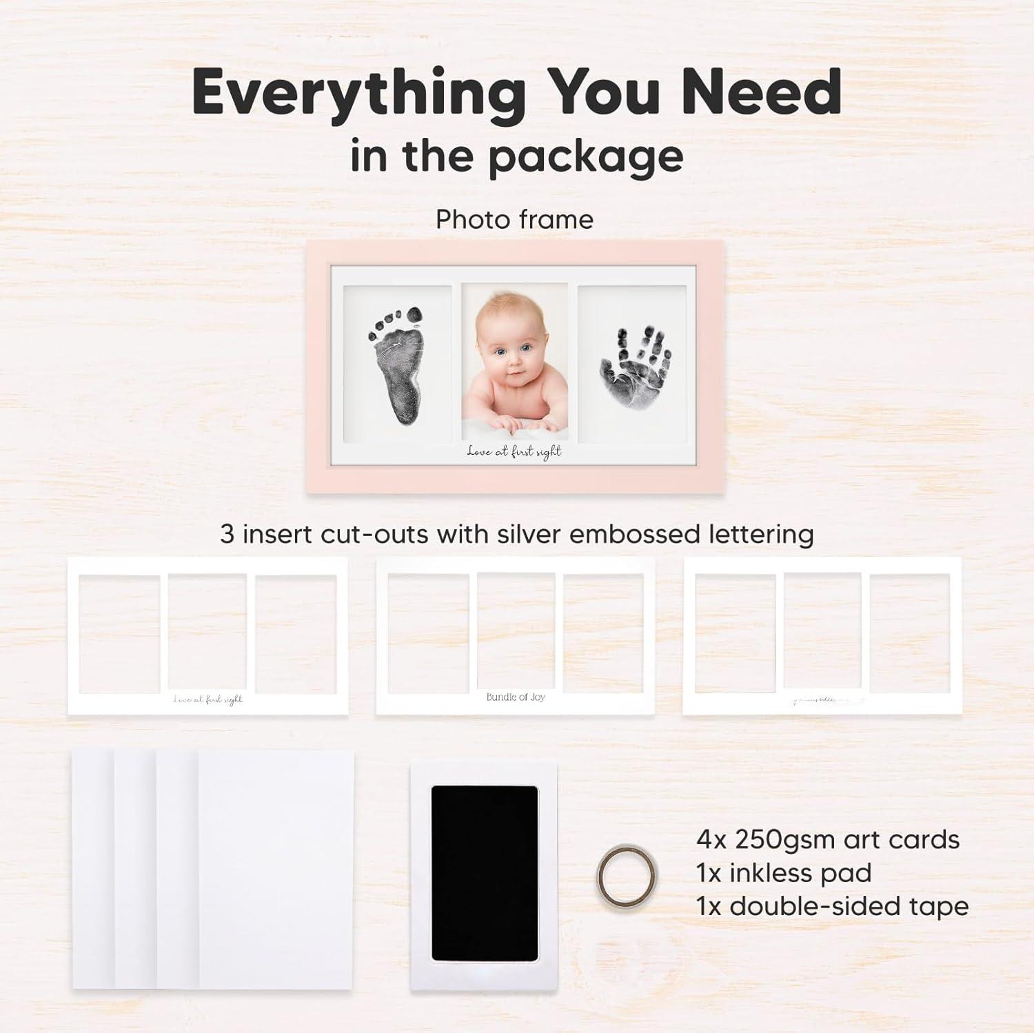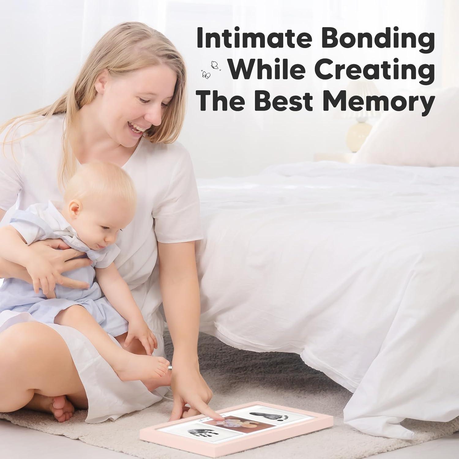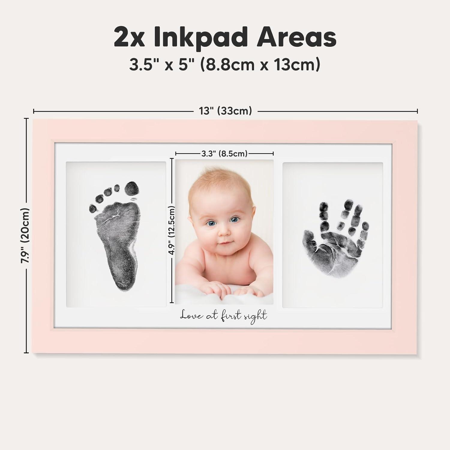 No Mess, No Residue – Designed to create your baby's hands and footprints without leaving ink residue on your baby. Our clean touch ink pads use a “zero ink contact” imprinting method to allow beautiful stamping on our baby keepsake frame.