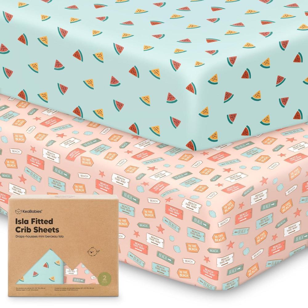 KeaBabies 2-Pack Baby Crib Sheets for Boys, Girls - 52x28 Viscose Derived from Bamboo Toddler Bed Sheets Neutral, Fitted Crib Mattress Cover for Standard Baby Bedding, Soft & Cozy (Beach Day)(Beach Day)