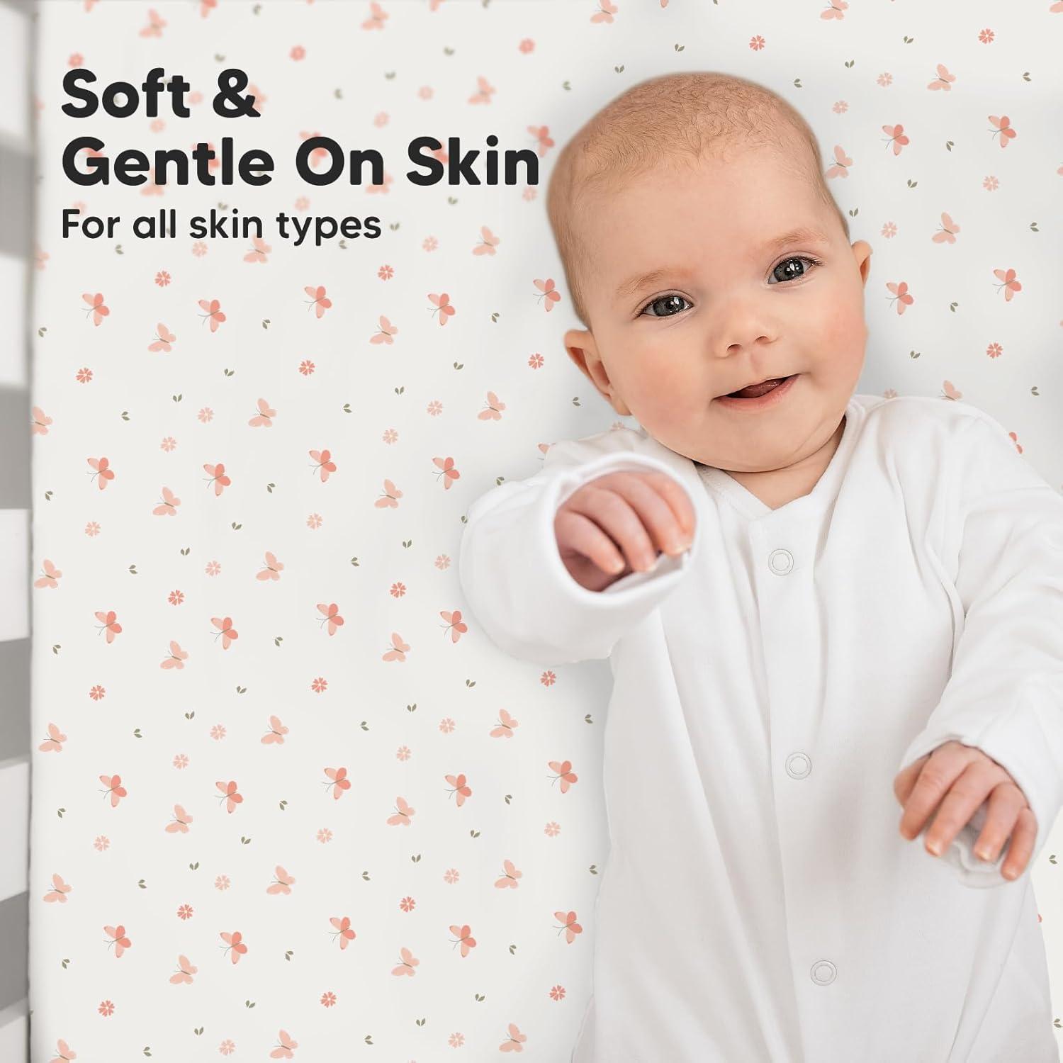 Easy To Put On – Our KeaBabies Isla Fitted Crib Sheet uses SnugFit Tech, a smart fabric knit that allows the fabric to stretch when you are fitting the bed sheet onto the crib mattress, for easy fitting and removal of the crib sheet. No more struggling with rigid fabric.