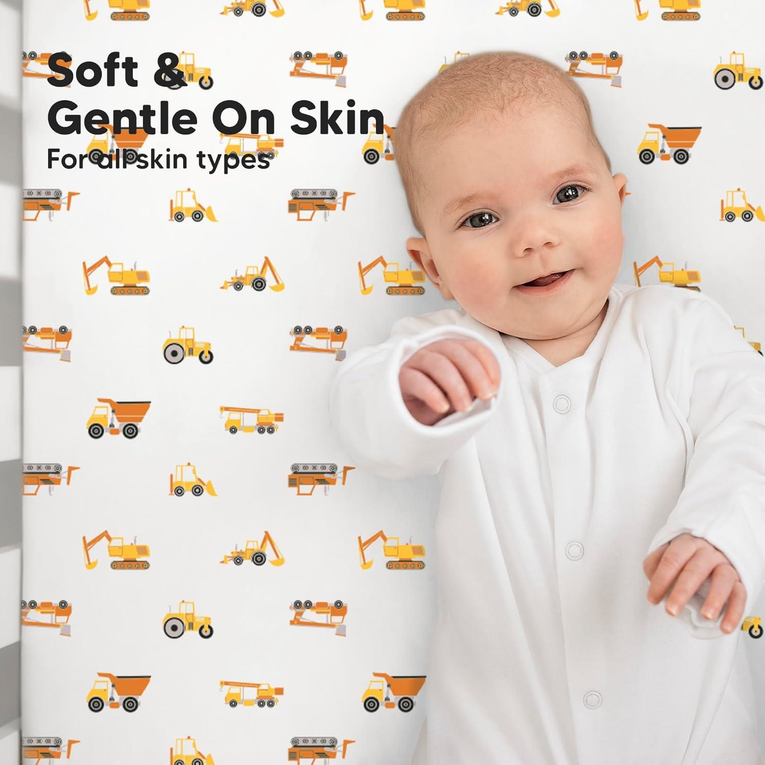 KeaBabies 2-Pack Baby Crib Sheets for Boys, Girls – 52×28 Viscose Derived from Bamboo Toddler Bed Sheets Neutral, Fitted Crib Mattress Cover for Standard Baby Bedding, Soft & Cozy (Beach Day)(Construction)