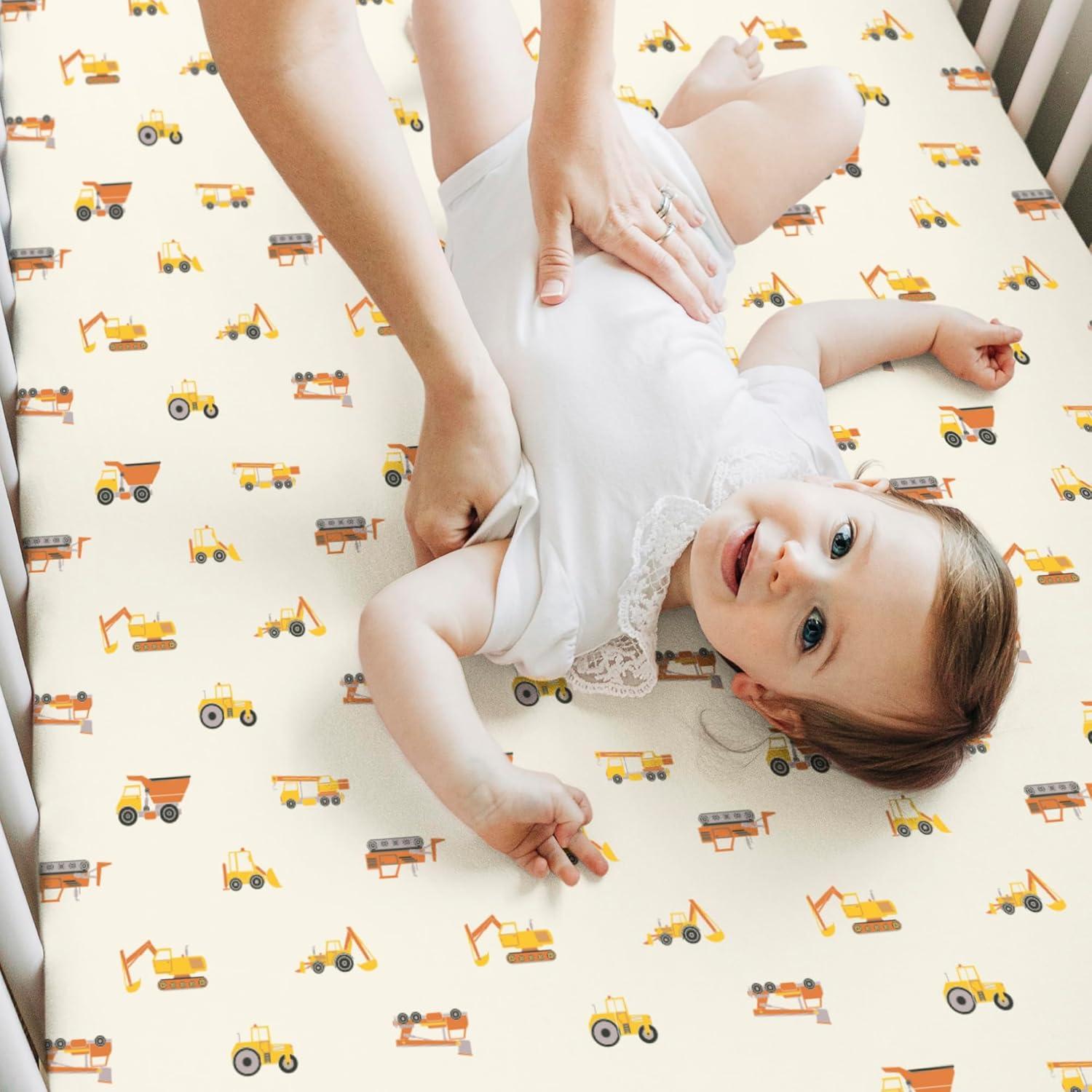 KeaBabies 2-Pack Baby Crib Sheets for Boys, Girls - 52x28 Viscose Derived from Bamboo Toddler Bed Sheets Neutral, Fitted Crib Mattress Cover for Standard Baby Bedding, Soft & Cozy (Beach Day)(Construction)