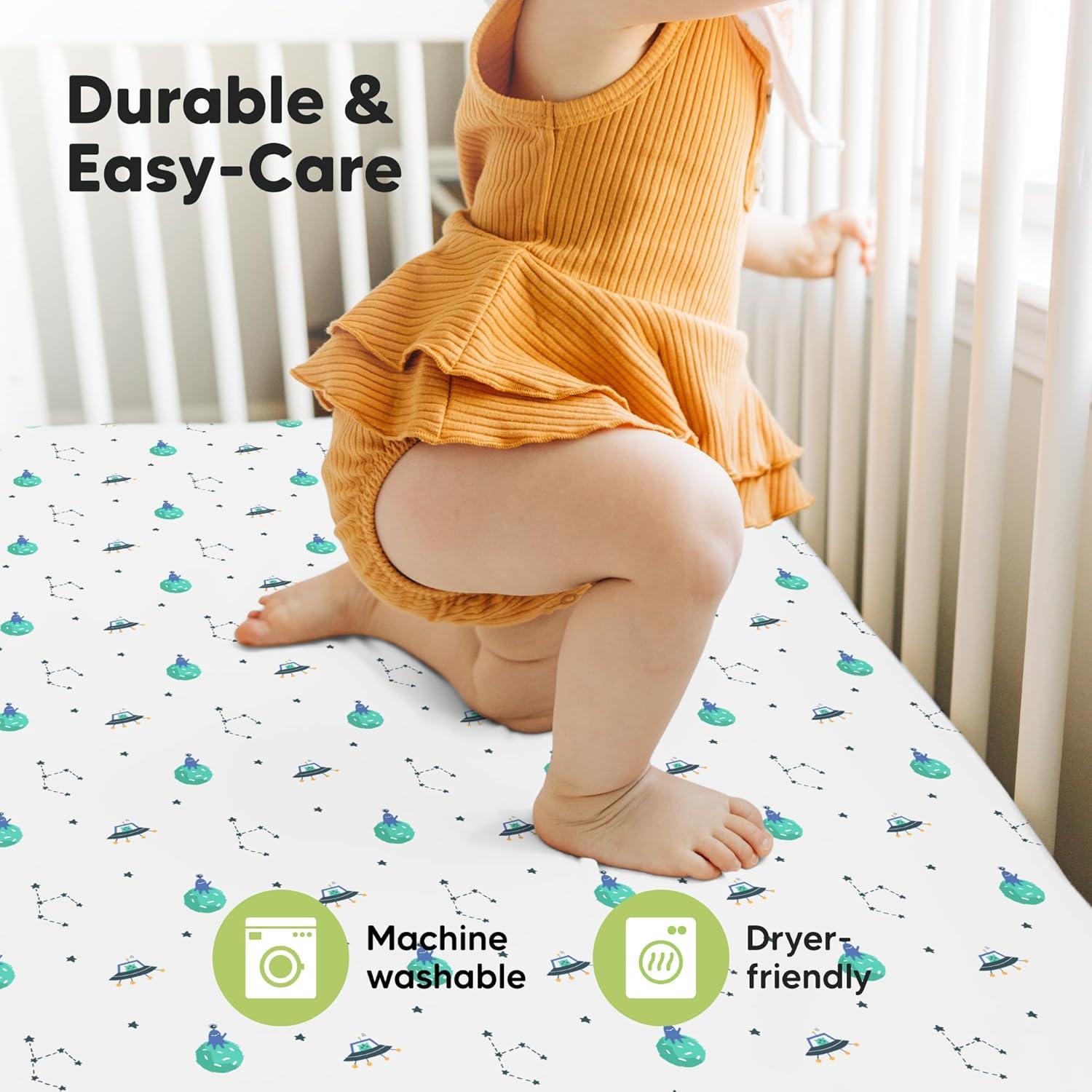 KeaBabies 2-Pack Baby Crib Sheets for Boys, Girls - 52x28 Viscose Derived from Bamboo Toddler Bed Sheets Neutral, Fitted Crib Mattress Cover for Standard Baby Bedding, Soft & Cozy (Savannah)(Space Quest)
