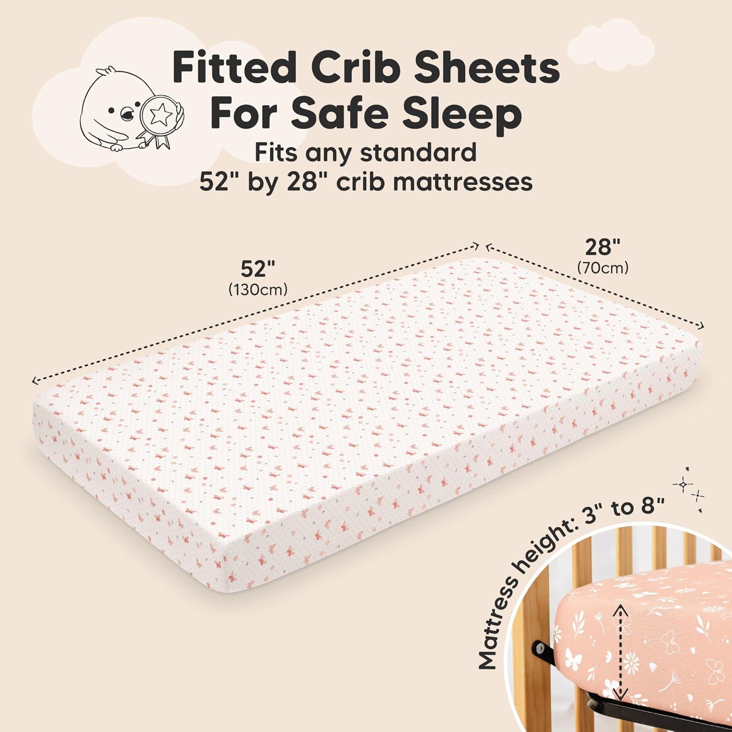2-Pack Baby Crib Sheets – KeaBabies Aereo Fitted Crib Sheets come with two viscose derived from bamboo blend cotton crib sheets for boys and girls. Perfectly sized 52” x 28” and height of 3” to 8” standard crib mattresses sheets.