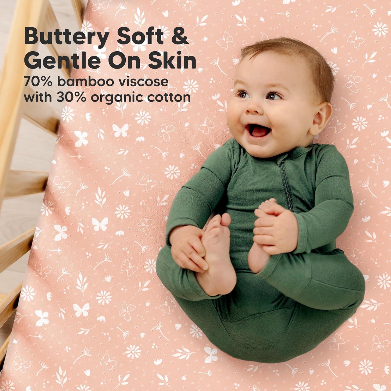 Soft & Breathable – Our unique Aereo fabric offer optimal airflow and comfort for your baby during sleep. Made of lightweight viscose derived from bamboo and cotton, this soft, breathable crib sheet for baby girls, boys is gentle on delicate skin.