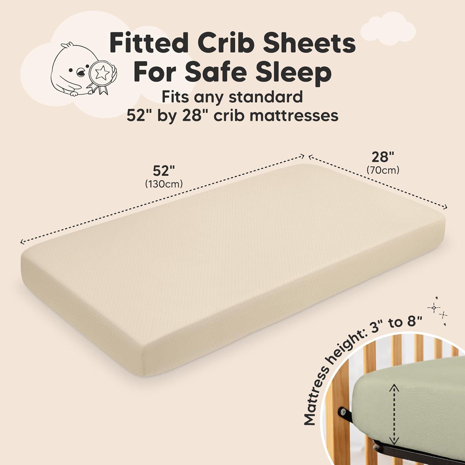 2-Pack Baby Crib Sheets – KeaBabies Aereo Fitted Crib Sheets come with two viscose derived from bamboo blend cotton crib sheets for boys and girls. Perfectly sized 52” x 28” and height of 3” to 8” standard crib mattresses sheets.