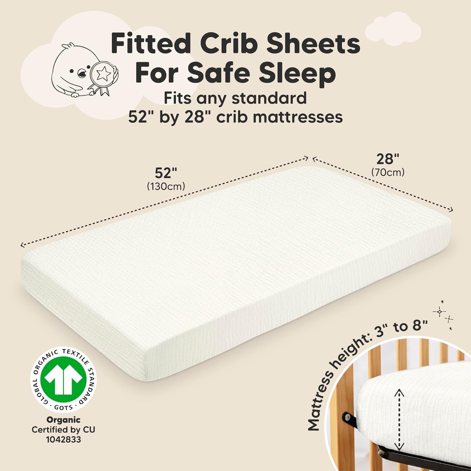 2-Pack Fitted Crib Sheets Neutral – KeaBabies Lyra Muslin Crib Sheets for baby girls & boys are perfectly sized standard crib mattress sheets at 52″ x 28″ x 3-8″(height). These soft crib sheets are made with 100% organic cotton (GOTS-certified).