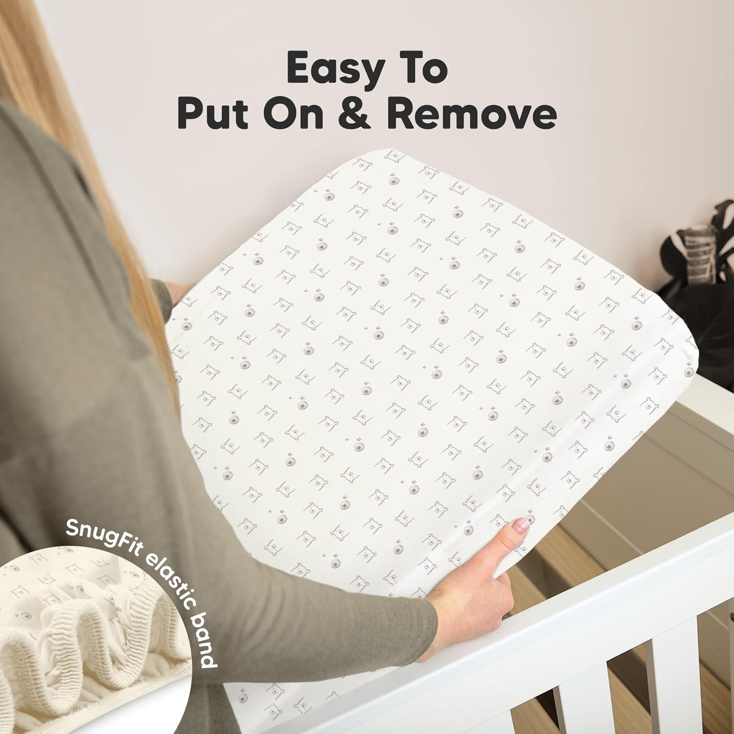 Easy To Put On – Our baby sheets for crib use SnugFit Tech, a smart fabric knit that stretches effortlessly for quick fitting and removal of the toddler bed sheets. No more struggling with rigid fabric!
