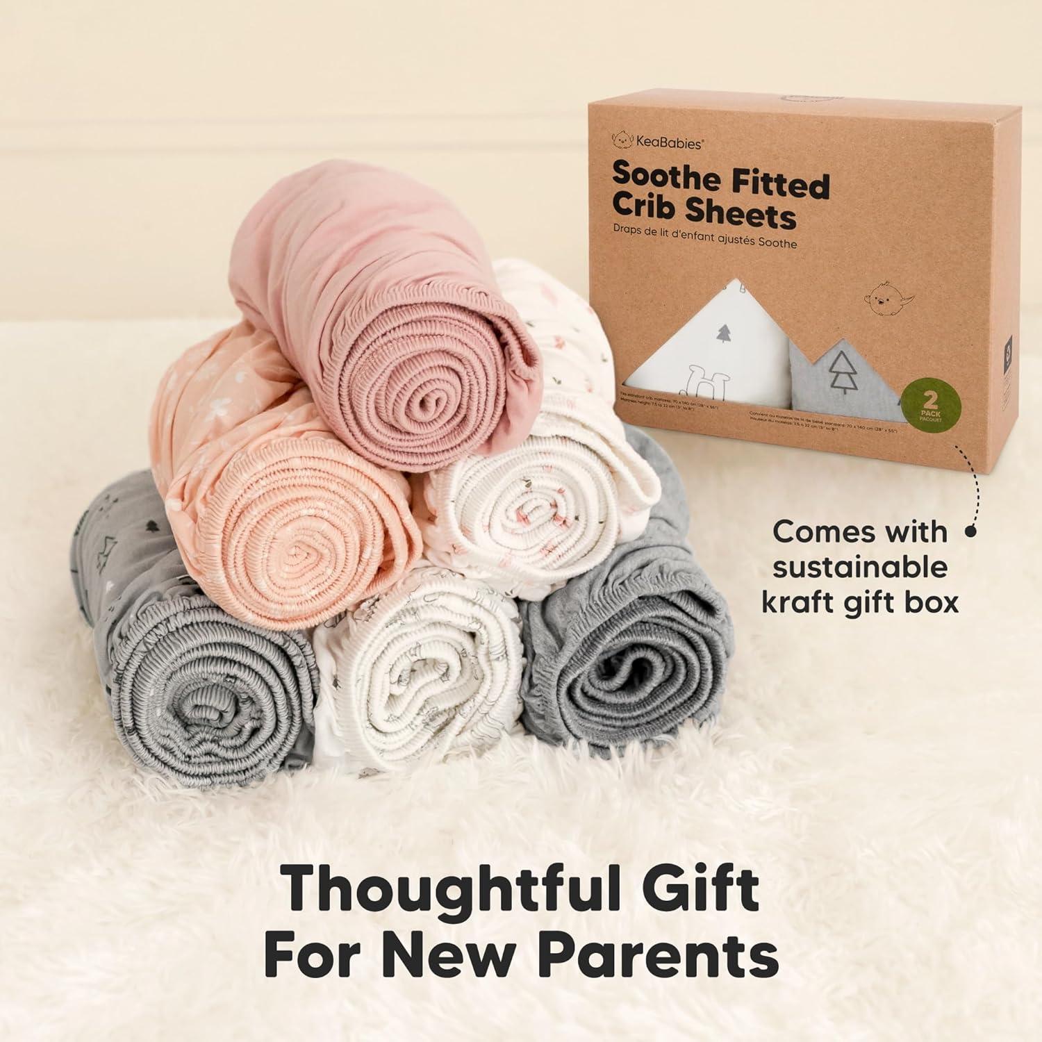 2-Pack Baby Crib Sheets – KeaBabies Soothe Fitted Crib Sheets for boys and girls; fit standard crib mattresses (52″x28″ with height 3″ to 8″) perfectly, offering your baby a safe and restful sleep.