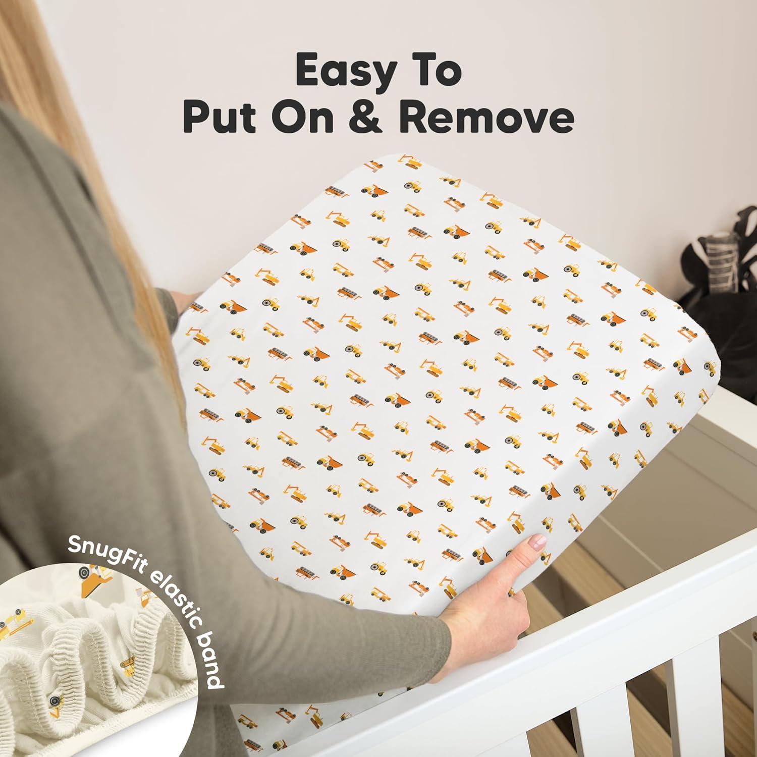 Easy To Put On – Our baby sheets for crib use SnugFit Tech, a smart fabric knit that stretches effortlessly for quick fitting and removal of the toddler bed sheets. No more struggling with rigid fabric!