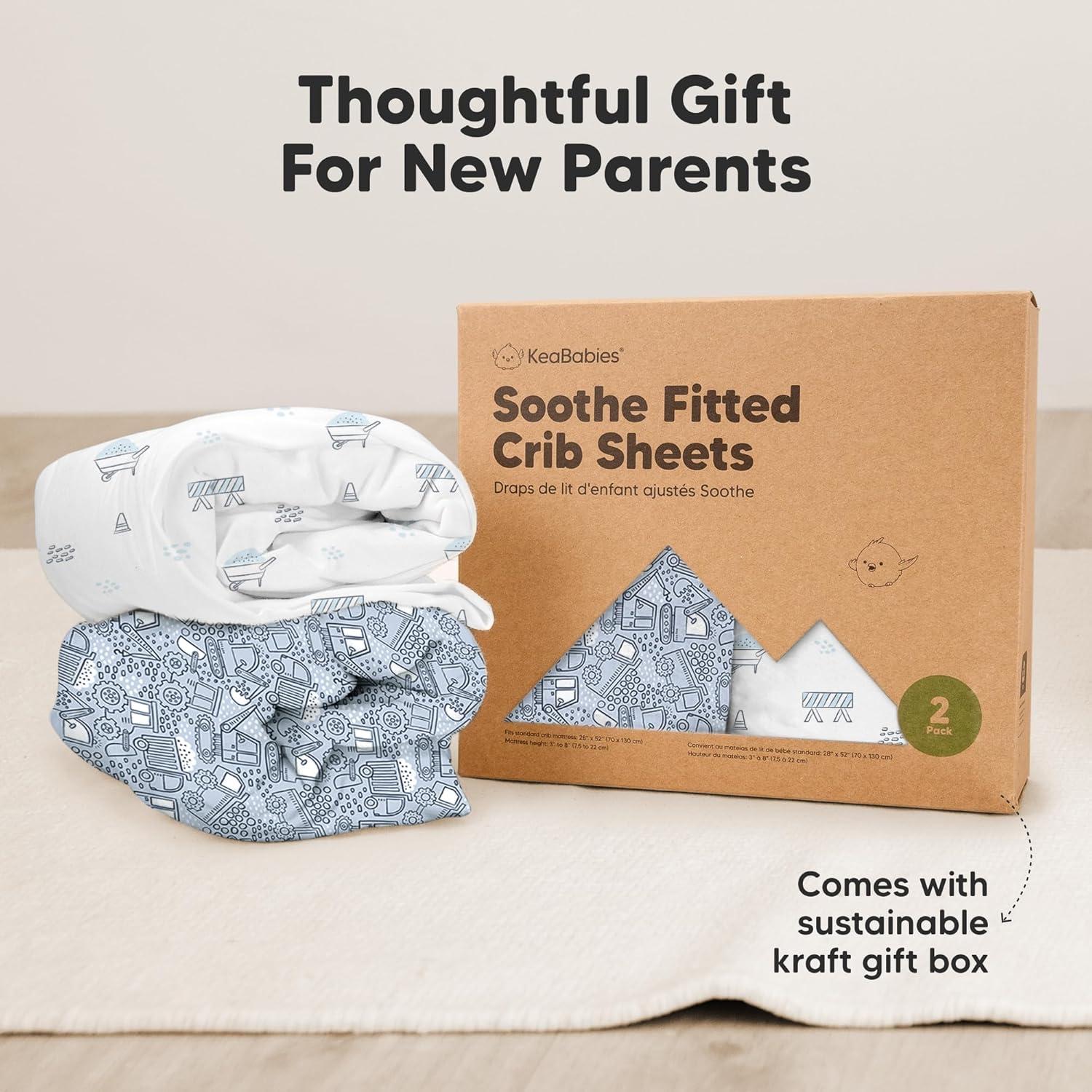 2-Pack Baby Crib Sheets – KeaBabies Soothe Fitted Crib Sheets for boys and girls; fit standard crib mattresses (52″x28″ with height 3″ to 8″) perfectly, offering your baby a safe and restful sleep.