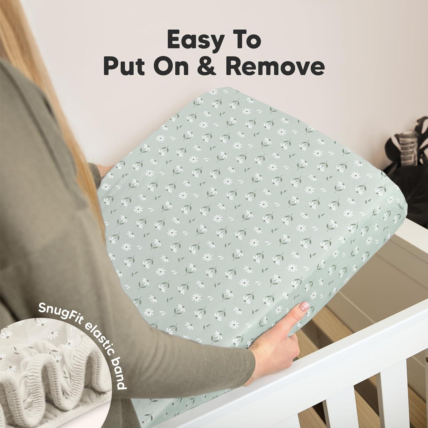 KeaBabies 2-Pack Organic Crib Sheets for Boys, Girls – 52×28 Fitted Crib Mattress Sheet Neutral, Breathable Jersey Cotton Cover for Baby Bed, Toddler Mattress, Soft & Cute Prints (Woodland)(Daisies)