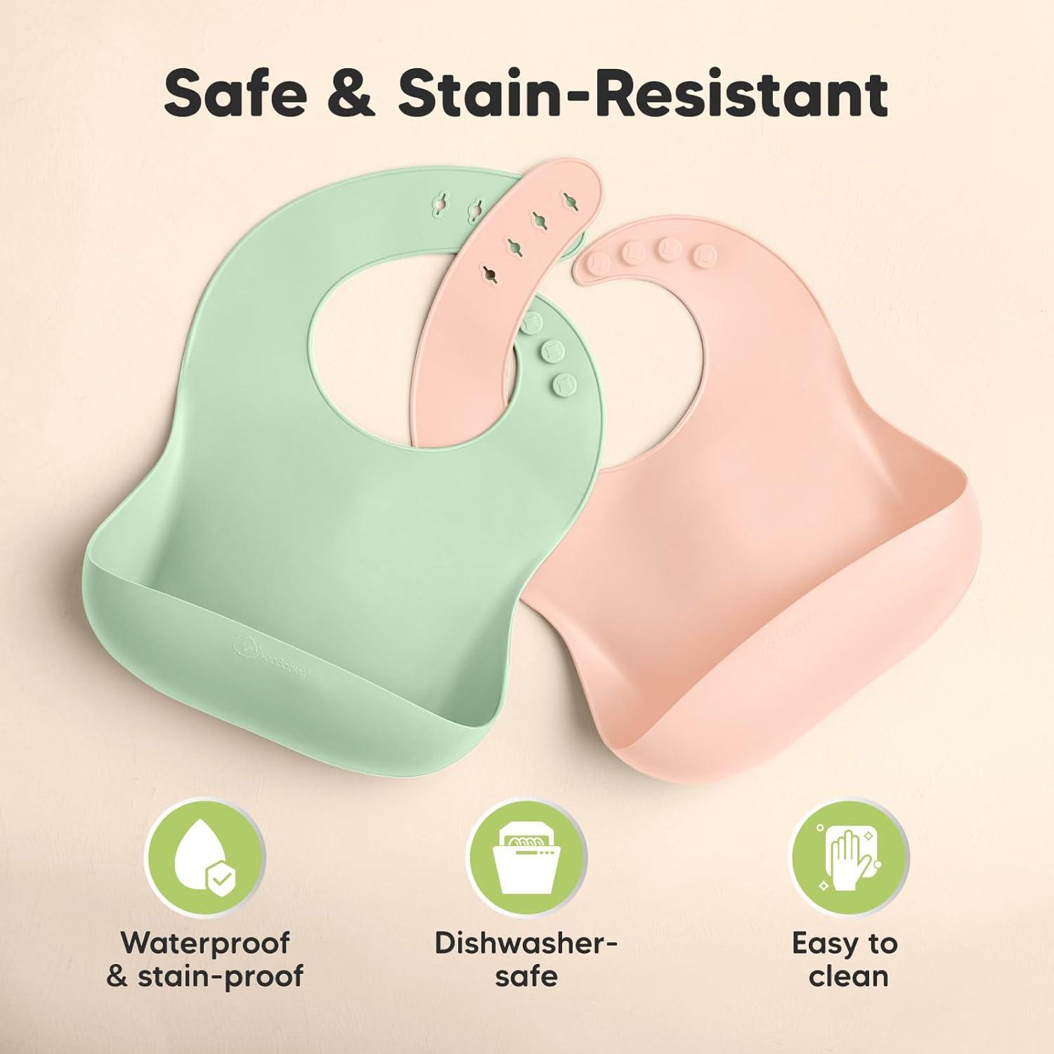 Easy to Clean – Simplify your laundry routine with our silicone baby feeding bibs, effortlessly rinse them after use or toss them in the dishwasher for hassle-free cleaning. It is one of your must-have BLW supplies for baby.
