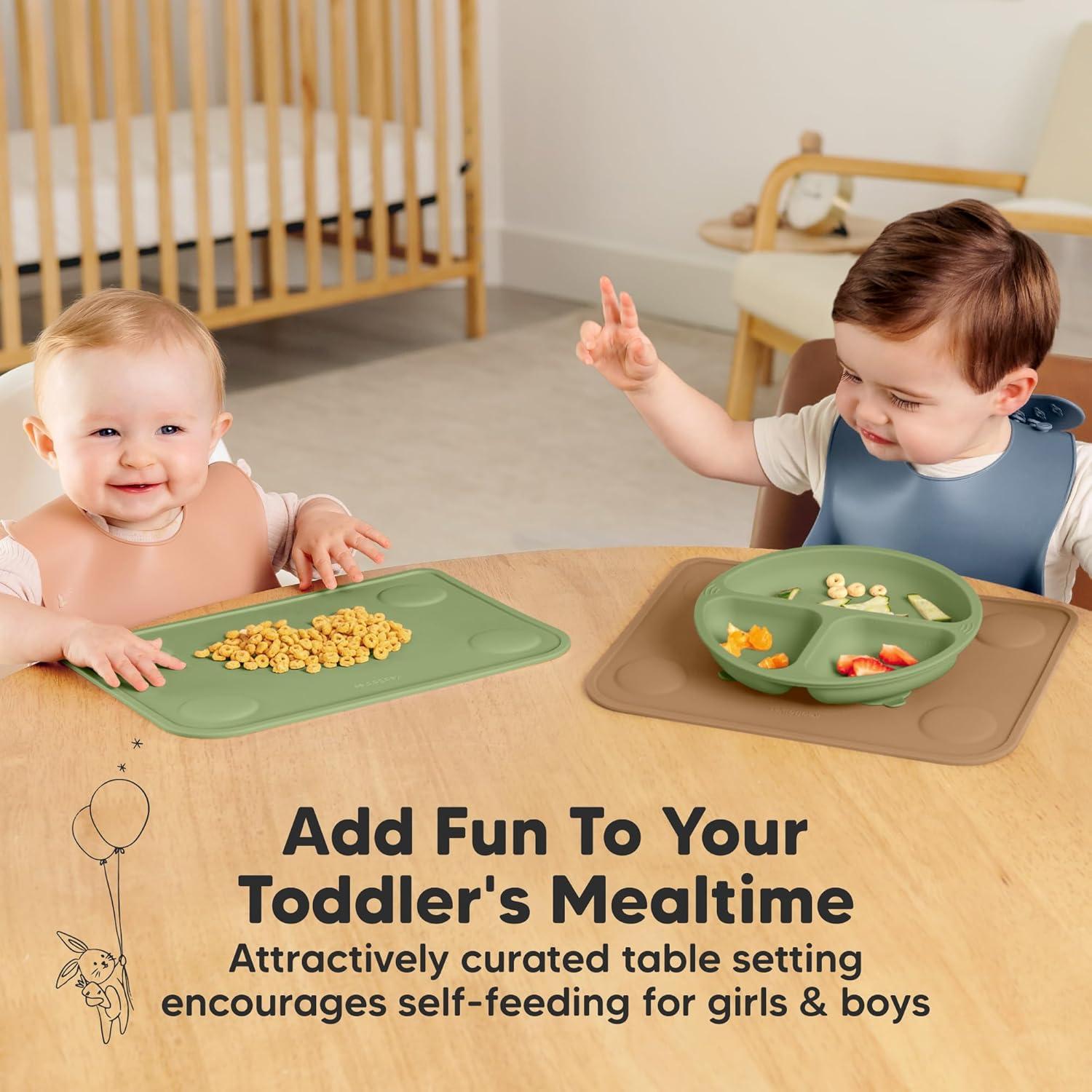 KeaBabies 2-Pack Silicone Placemats for Toddlers – 12×9 Non Slip Suction Baby Silicone Placemat for Kids Eating, Easy to Clean, Busy Travel Baby Mat for Dining Table, Food Grade/BPA-Free (Slate)(Desert)