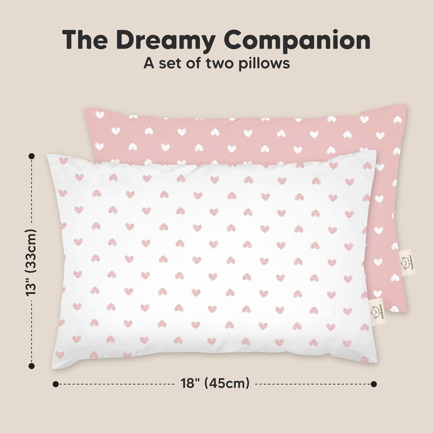 imageKeaBabies 2Pack Toddler Pillow 13x18  Soft Organic Cotton Kids Travel Bed Pillows for Sleeping School Nap Machine Washable Toddlers 2 to 5 Pillowcase Sold Separately HeartsHearts