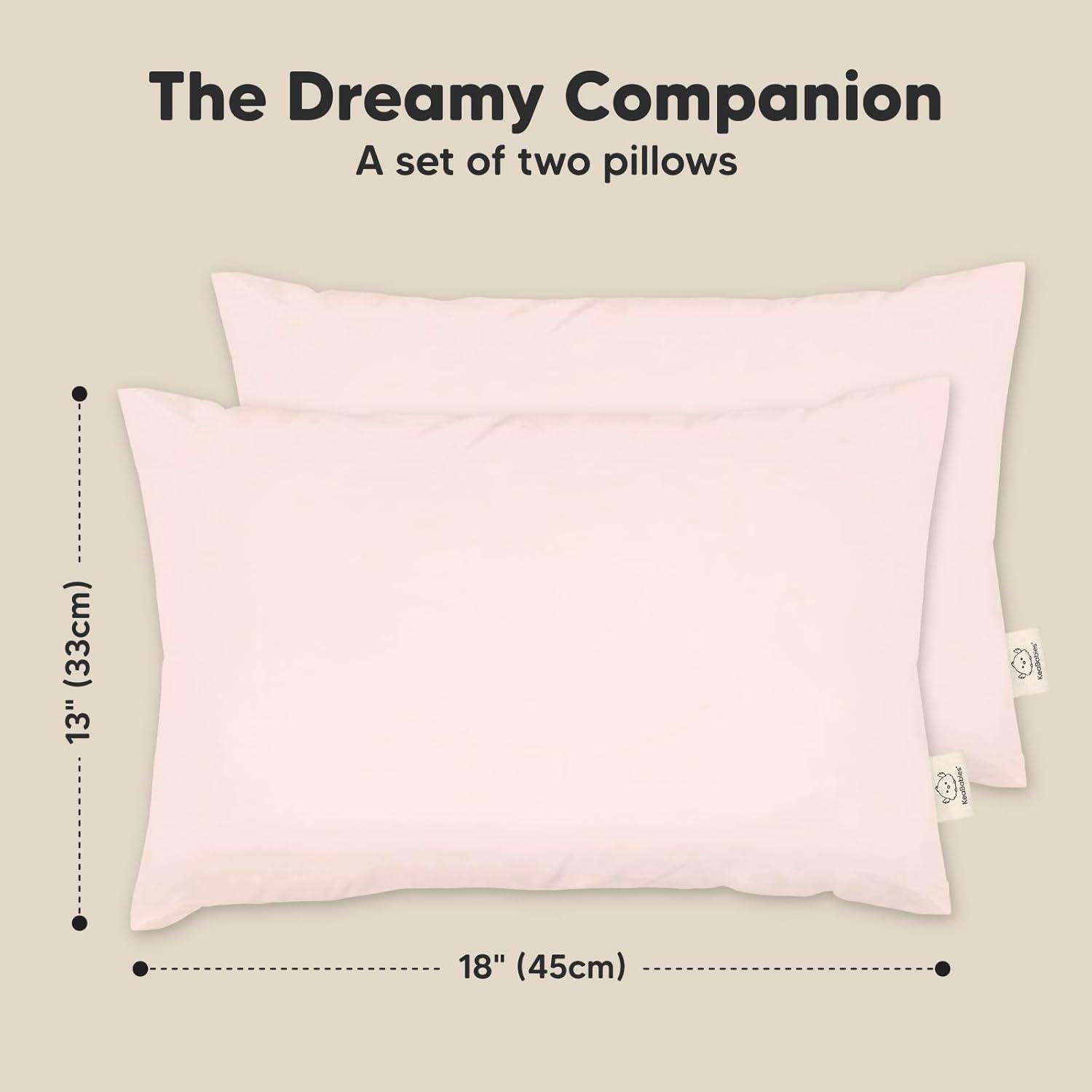 imageKeaBabies 2Pack Toddler Pillow 13x18  Soft Organic Cotton Kids Travel Bed Pillows for Sleeping School Nap Machine Washable Toddlers 2 to 5 Pillowcase Sold Separately HeartsMist Pink