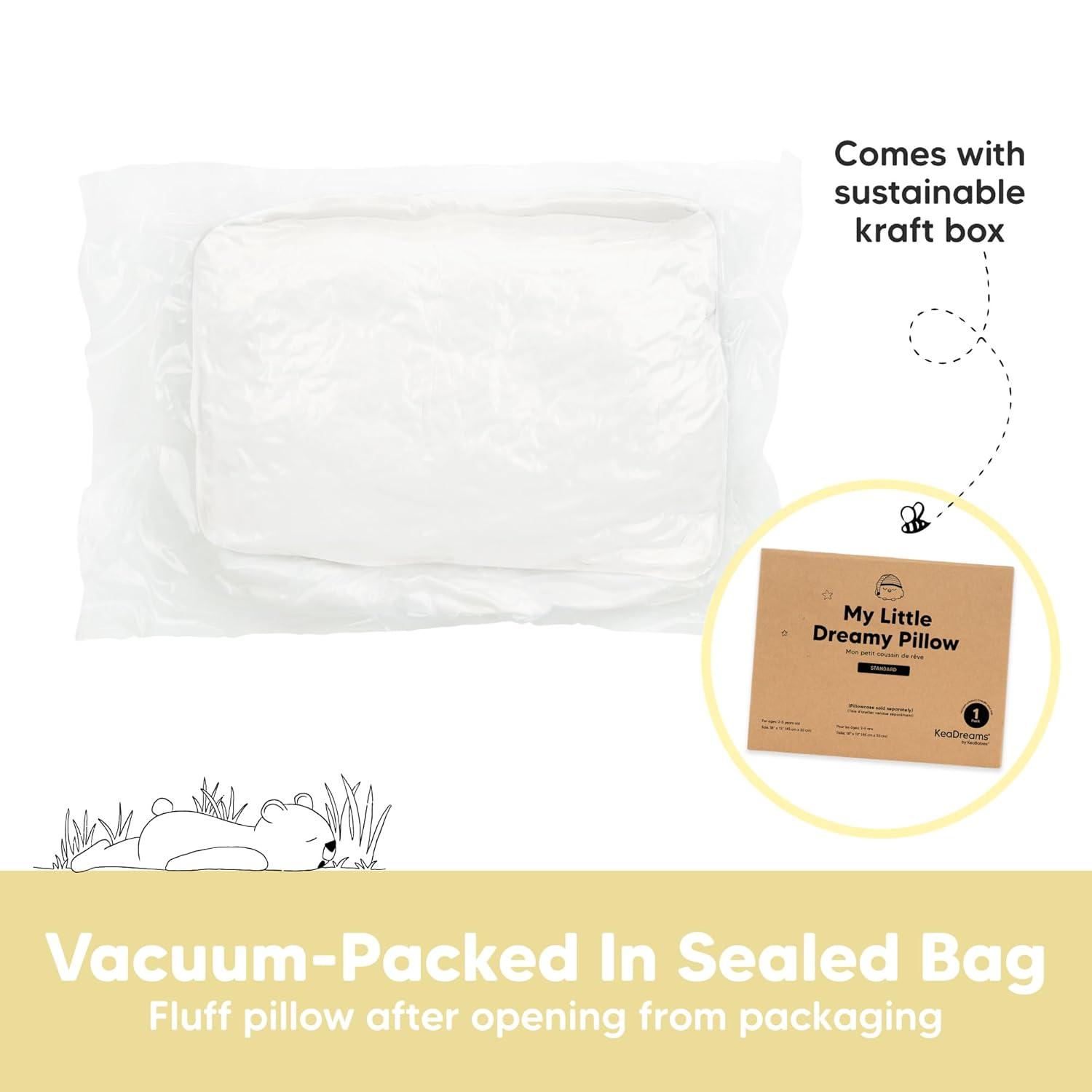 Ergonomically Designed – The KeaBabies Toddler Pillow offers ergonomic support for healthy spinal alignment and all-night comfort. Note: Vacuum-sealed and may appear flat. Simply massage or cold wash and tumble dry low to restore its fluffiness after opening from package.