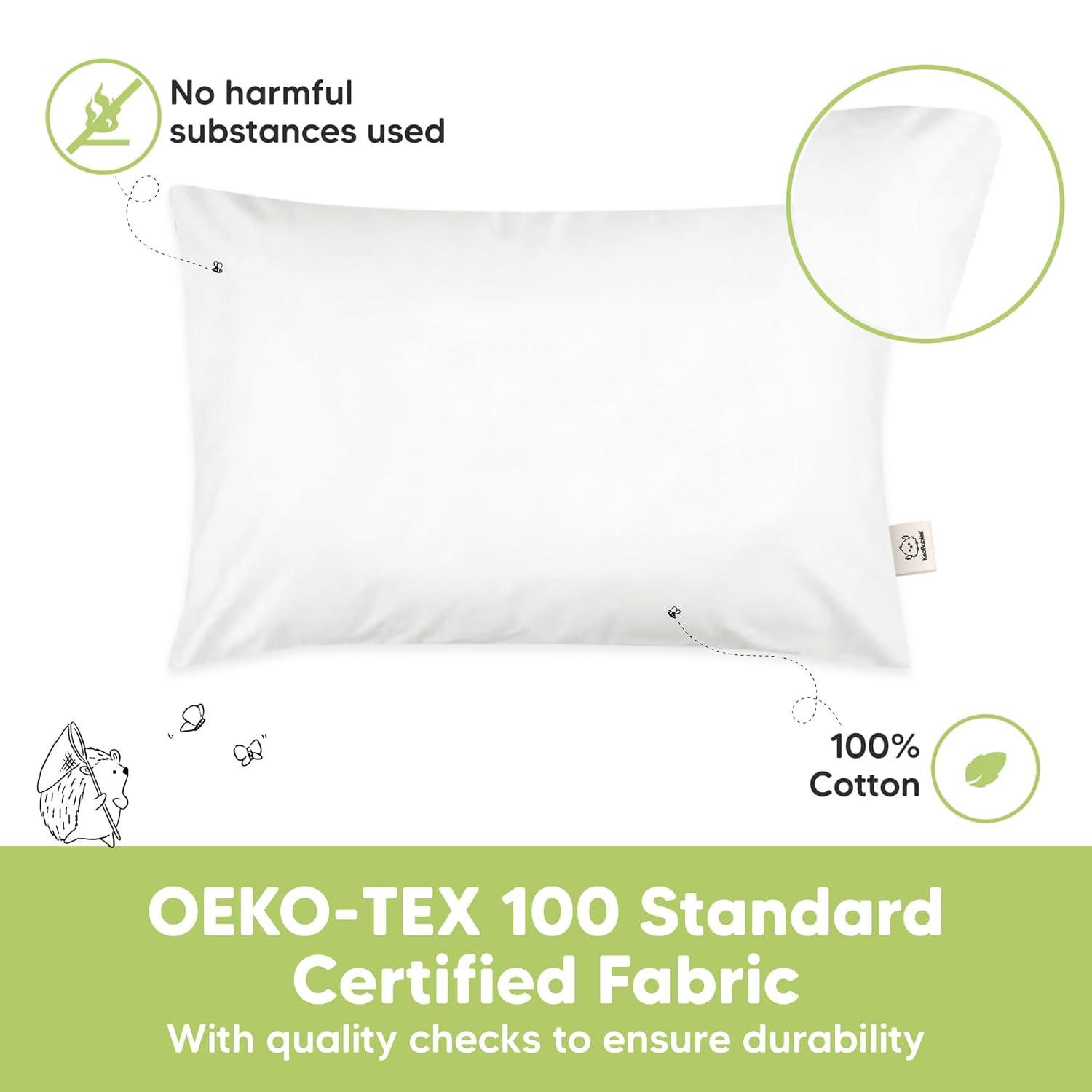 OEKO-TEX 100 Standard Certified – We use a cotton kid pillow shell that is certified by OEKO-TEX 100 Standards to be free from harmful substances, making it the best pillow for toddlers, kids, children. It is ultra soft and breathable year-round.