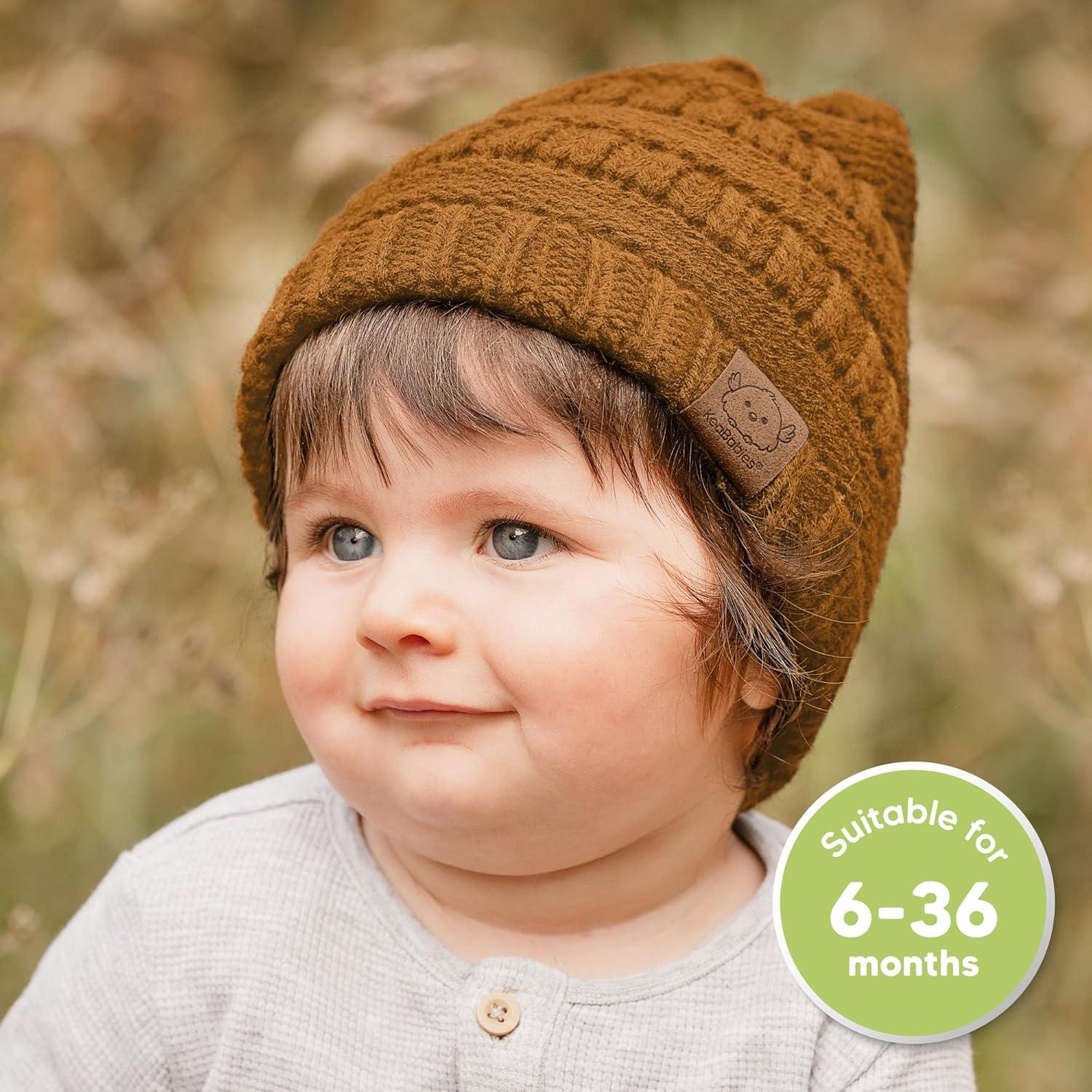 KeaBabies 3-Pack Baby Beanies for Boys, Girls - Stretchy Knit Baby Hats, Cute Newborn(Latte)