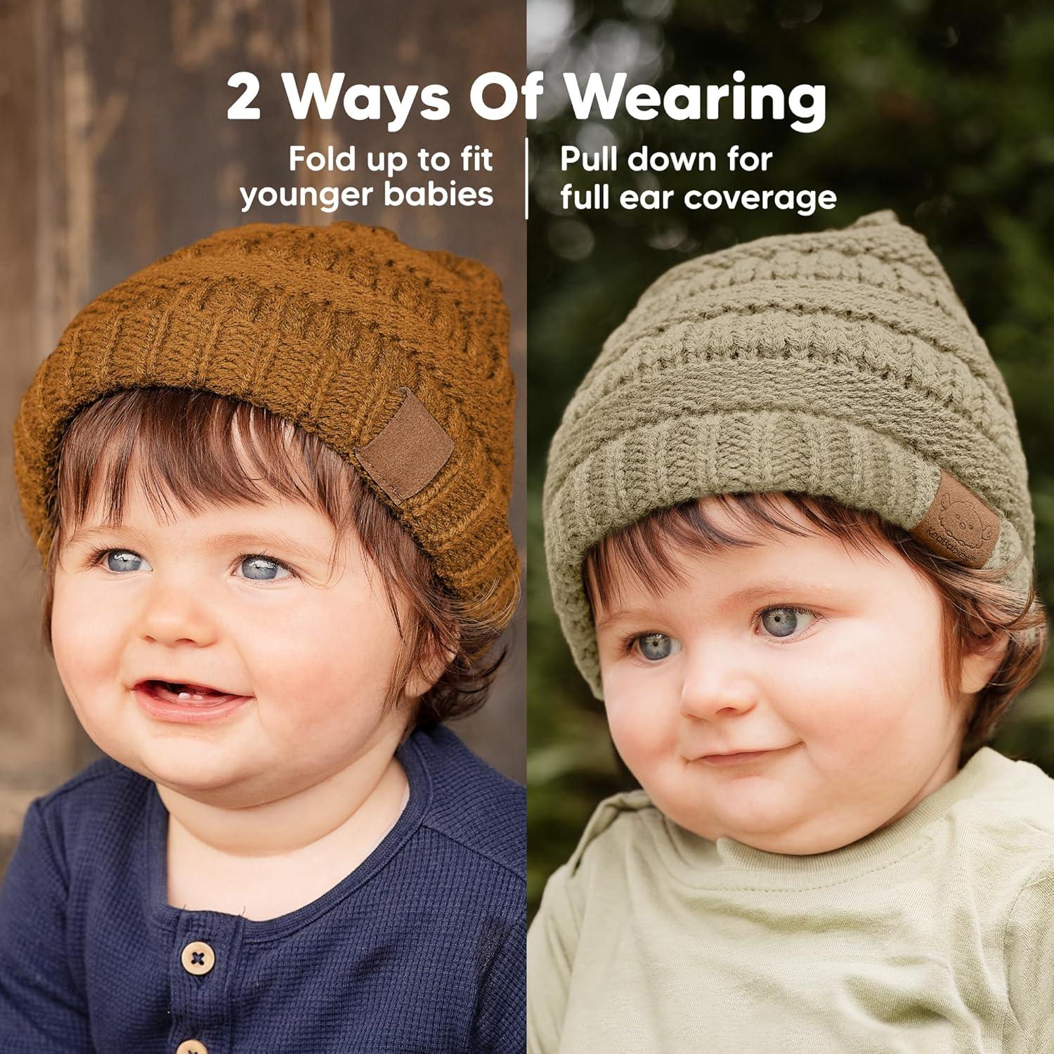 KeaBabies 3-Pack Baby Beanies for Boys, Girls – Stretchy Knit Baby Hats, Cute Newborn(Latte)