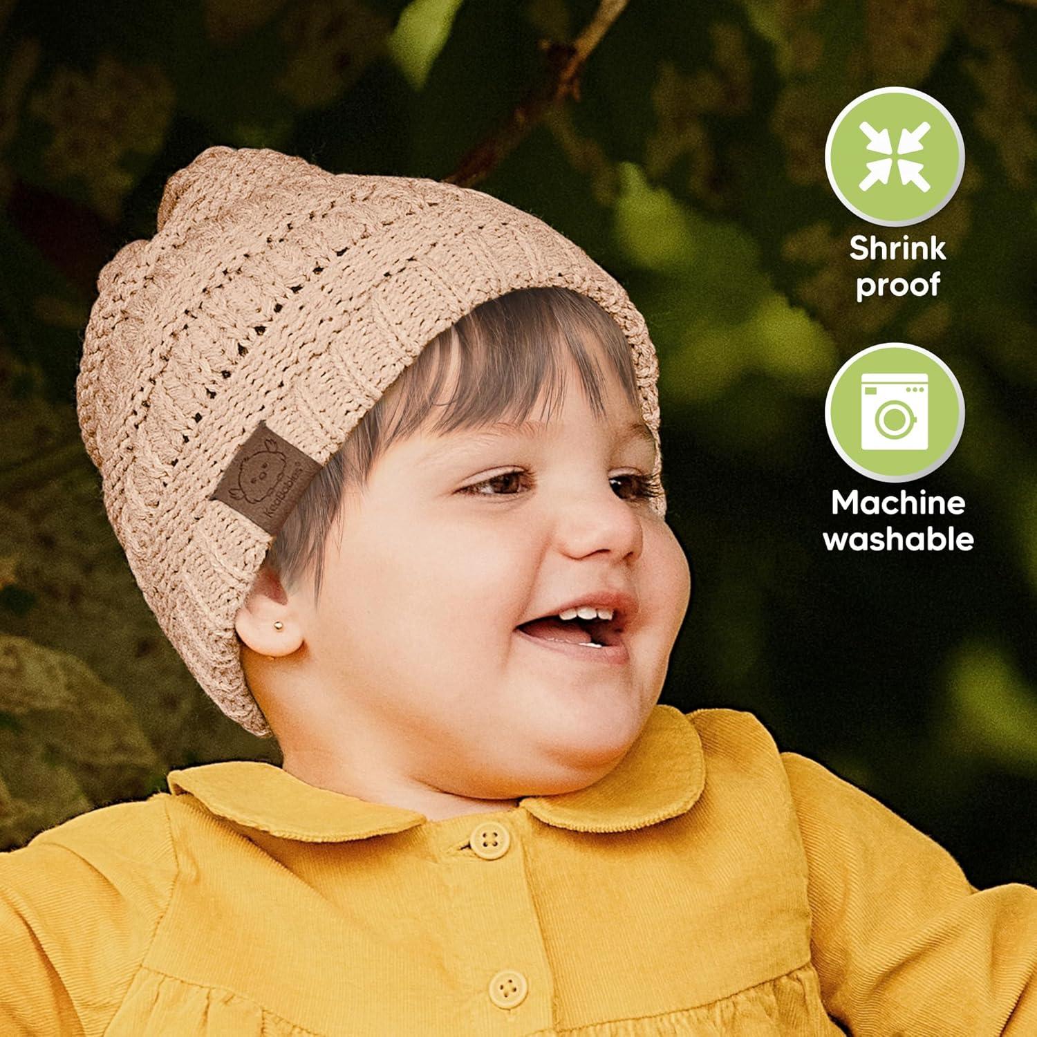 KeaBabies 3-Pack Baby Beanies for Boys, Girls – Stretchy Knit Baby Hats, Cute Newborn(Pecan)