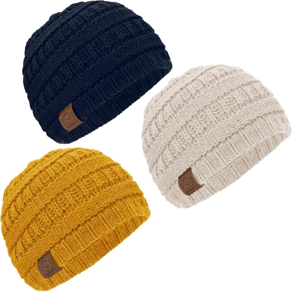 KeaBabies 3-Pack Baby Beanies for Boys, Girls – Stretchy Knit Baby Hats, Cute Newborn(Tawny)