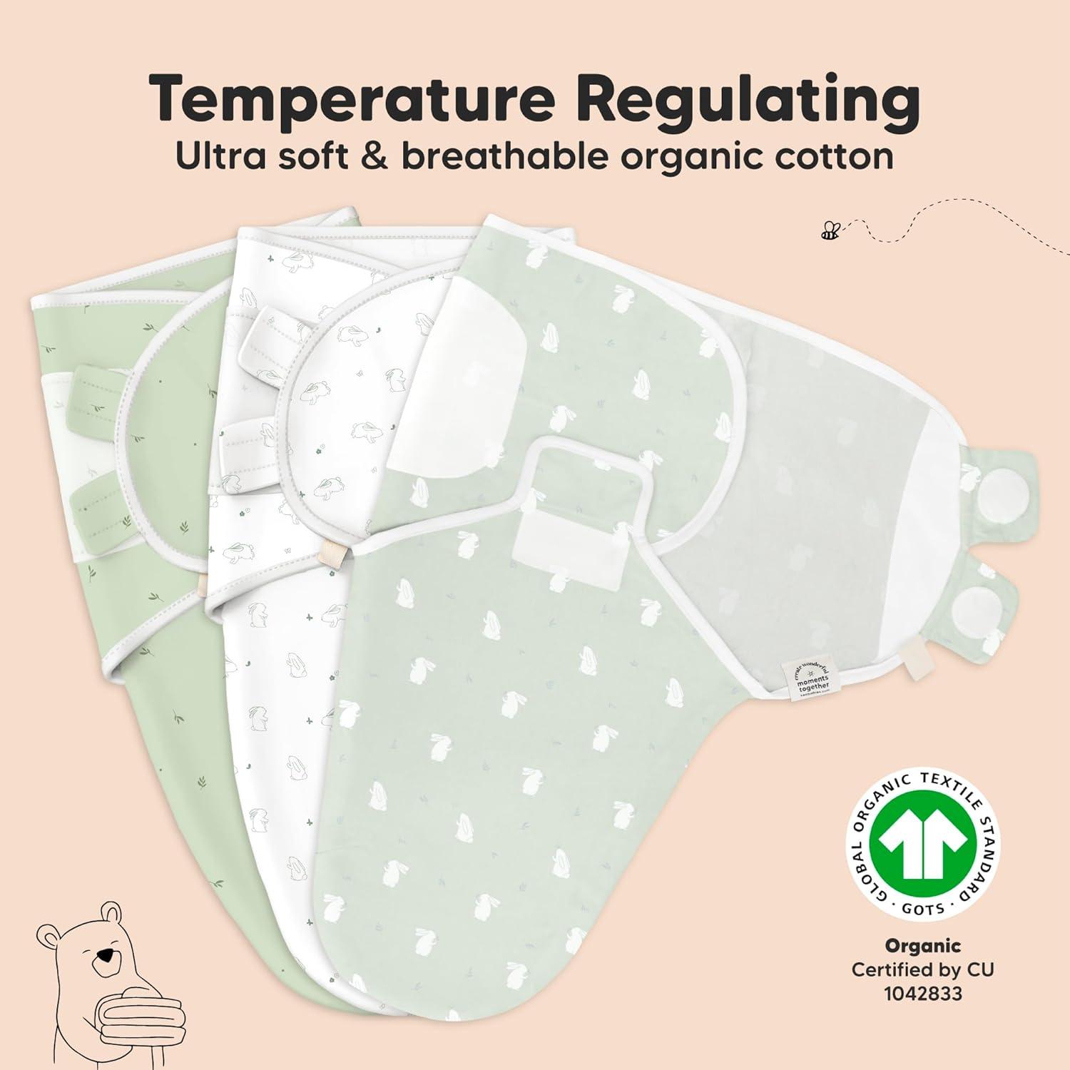 KeaBabies 3-Pack Organic Baby Swaddle Sleep Sacks - Swaddles for Newborns, Infant 0-3 Months, Baby Girls, Boys, Soft & Snug Newborn Sleep Sack, Nursery Swaddling Blankets (Nordic)(Bunnies)