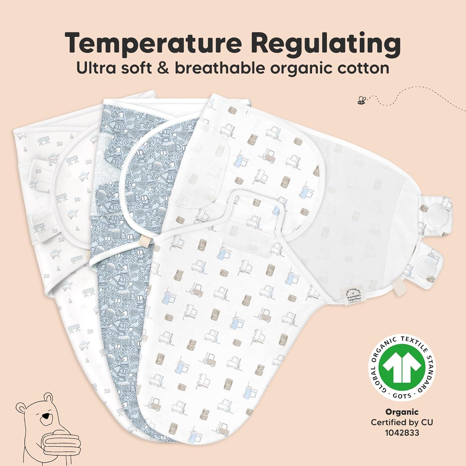Breathable & Temperature-regulating – Our Soothe Swaddle for newborns is made with ultra-soft Organic Cotton (GOTS Certified by CU 1042833), it is lightweight and highly breathable which makes it a highly-raved newborn swaddle sack for all seasons.