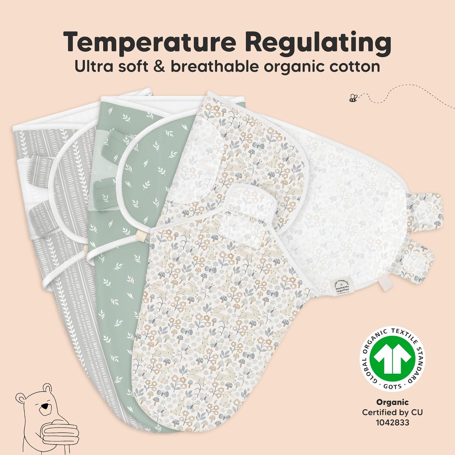 Breathable & Temperature-regulating – Our Soothe Swaddle for newborns is made with ultra-soft Organic Cotton (GOTS Certified by CU 1042833), it is lightweight and highly breathable which makes it a highly-raved newborn swaddle sack for all seasons.