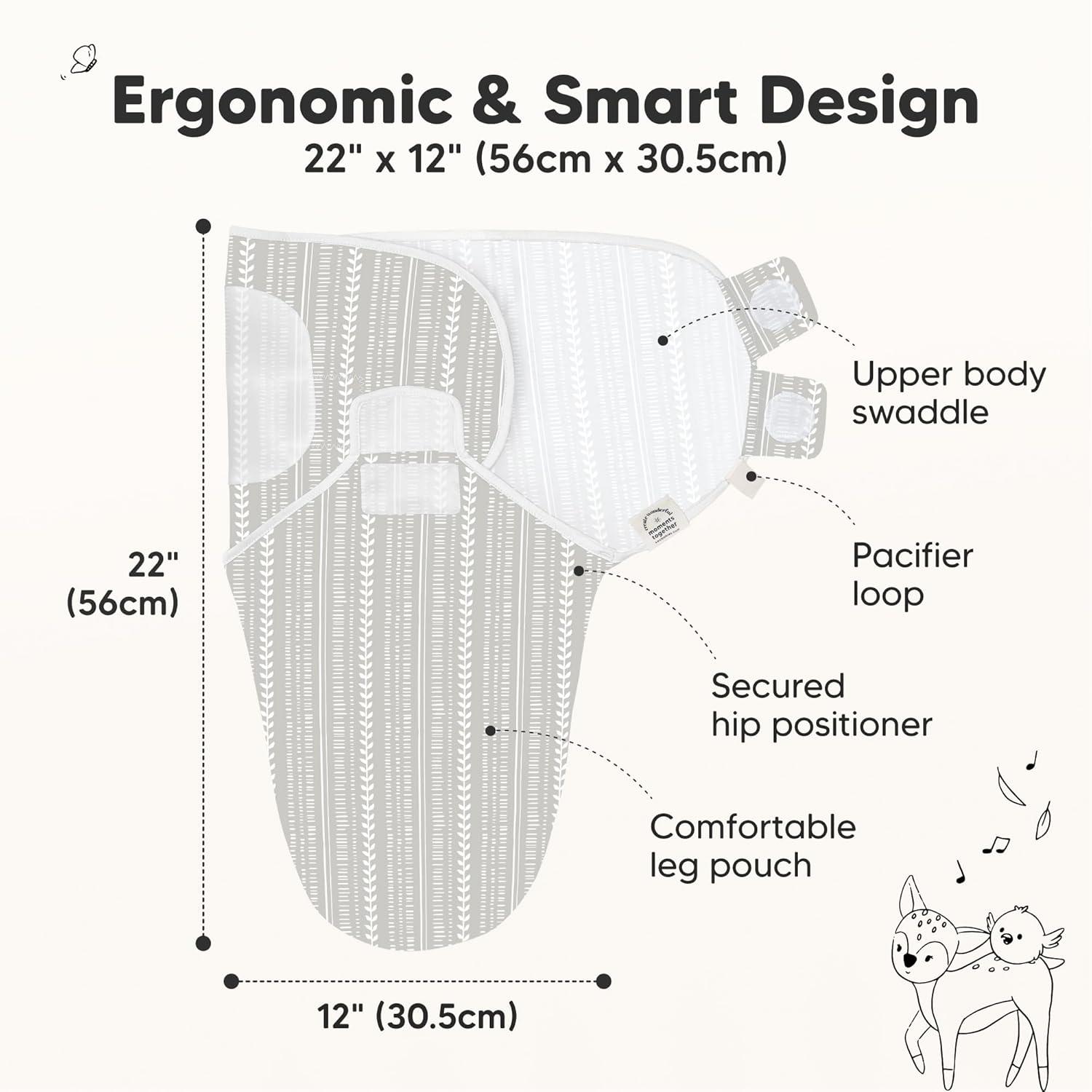 Ergonomic for Newborn Growth – Certified as a hip-healthy product by the International Hip Dysplasia Institute (IHDI), the KeaBabies Soothe Baby Swaddle Sack provides ergonomic hip support for an infant's first 6 months of growth.
