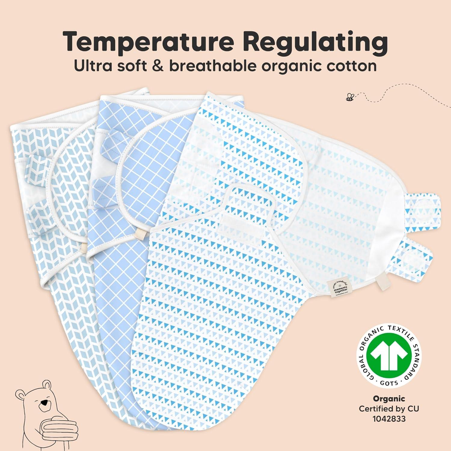 Breathable & Temperature-regulating – Our Soothe Swaddle for newborns is made with ultra-soft Organic Cotton (GOTS Certified by CU 1042833), it is lightweight and highly breathable which makes it a highly-raved newborn swaddle sack for all seasons.