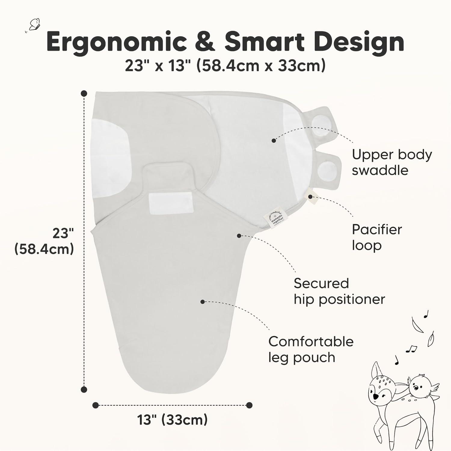 Ergonomic for Newborn Growth – Certified as a hip-healthy product by the International Hip Dysplasia Institute (IHDI), the KeaBabies Soothe Baby Swaddle Sack provides ergonomic hip support for an infant's first 6 months of growth.
