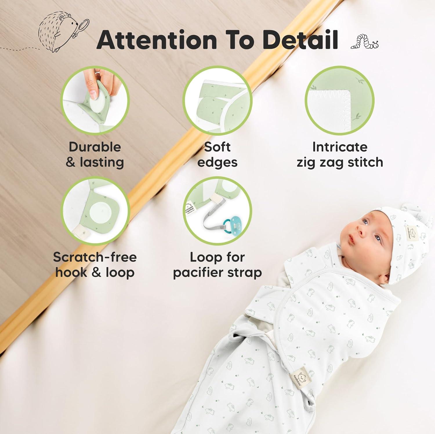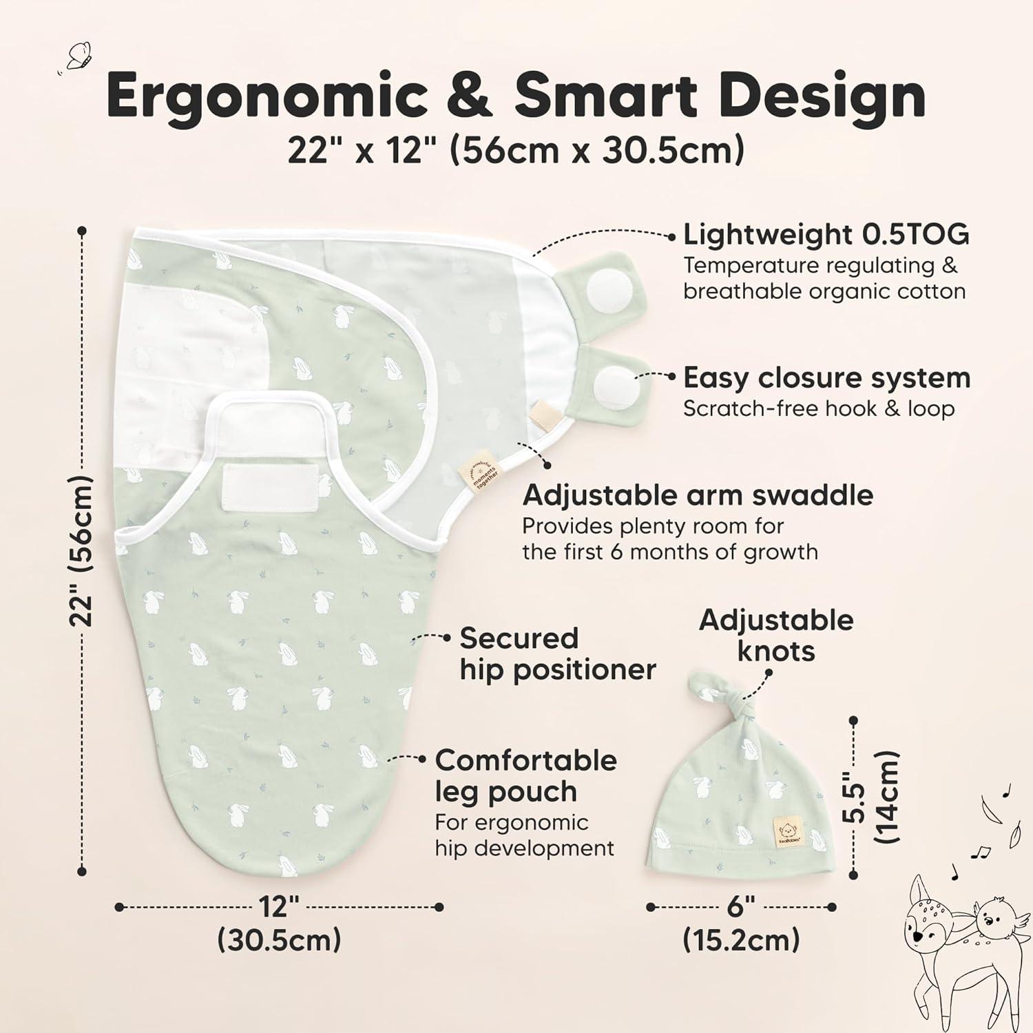 Easy to Use – Wrap your baby in just four steps for a snug and secure fit. Paired with matching beanie hats, our machine-washable baby sleep sacks double as adorable swaddles for newborn girls and boys, promoting a safe quality sleep experience.