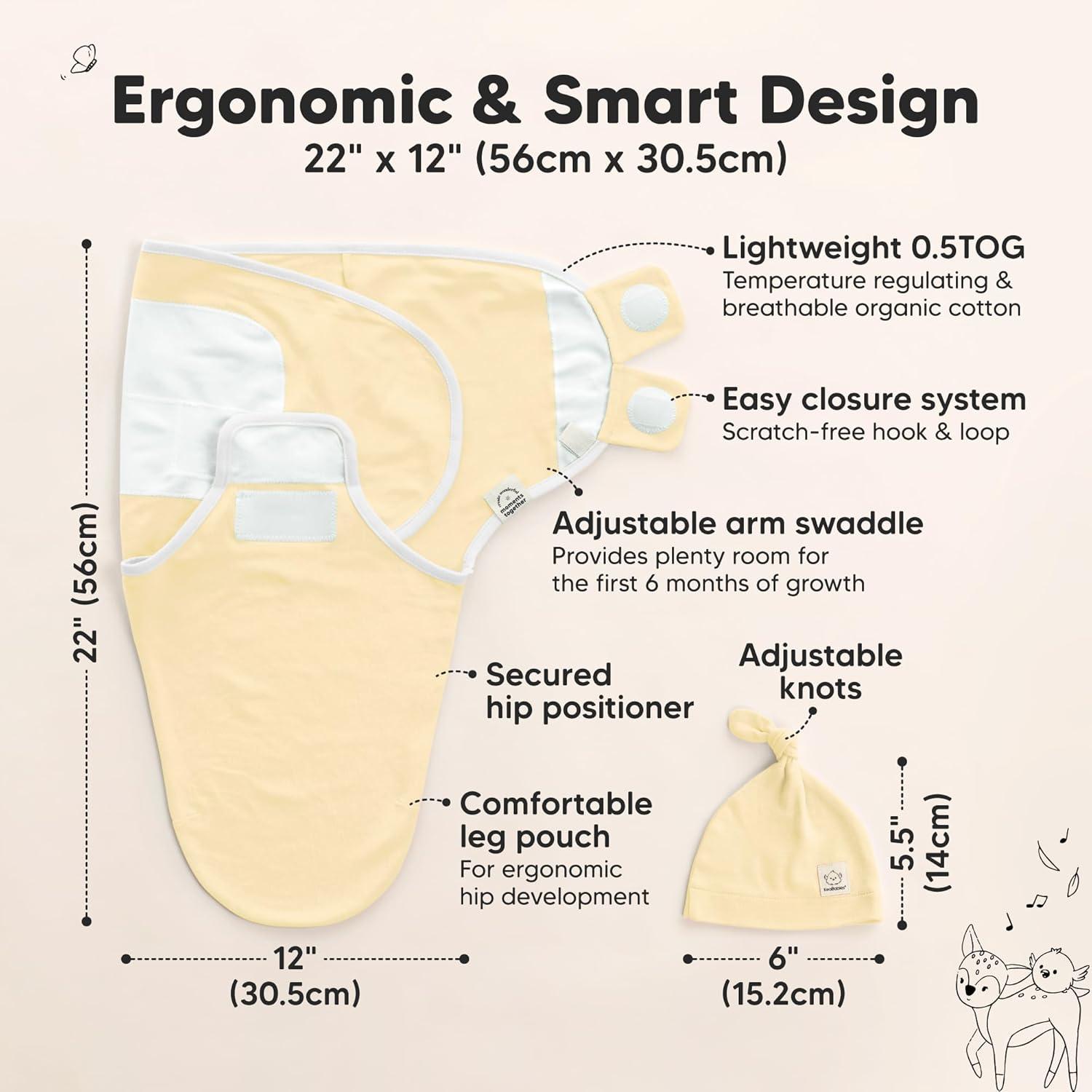 Ergonomic for Newborns – KeaBabies Soothe Baby Swaddle Sack with Hats, certified by the International Hip Dysplasia Institute (IHDI), promotes ergonomic hip development during an infant’s first six months, ensuring comfort for healthy growth.