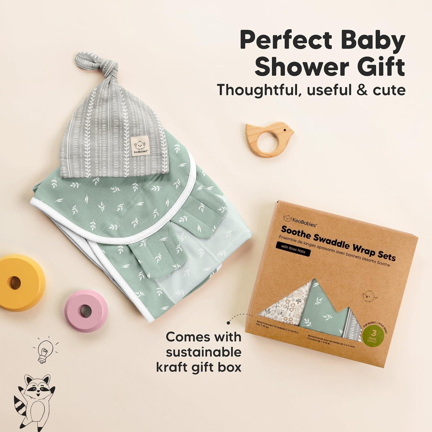 Gift-Ready – KeaBabies Soothe Baby Swaddle Wraps with Knot Hats come in a kraft gift box, perfect as baby showers and registries gift. Thoughtful, practical and easy to use baby boy, baby girl newborn essential for new parents.