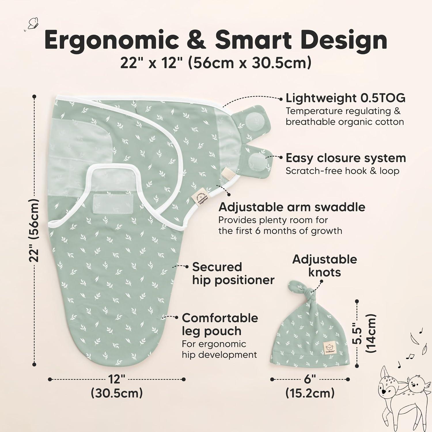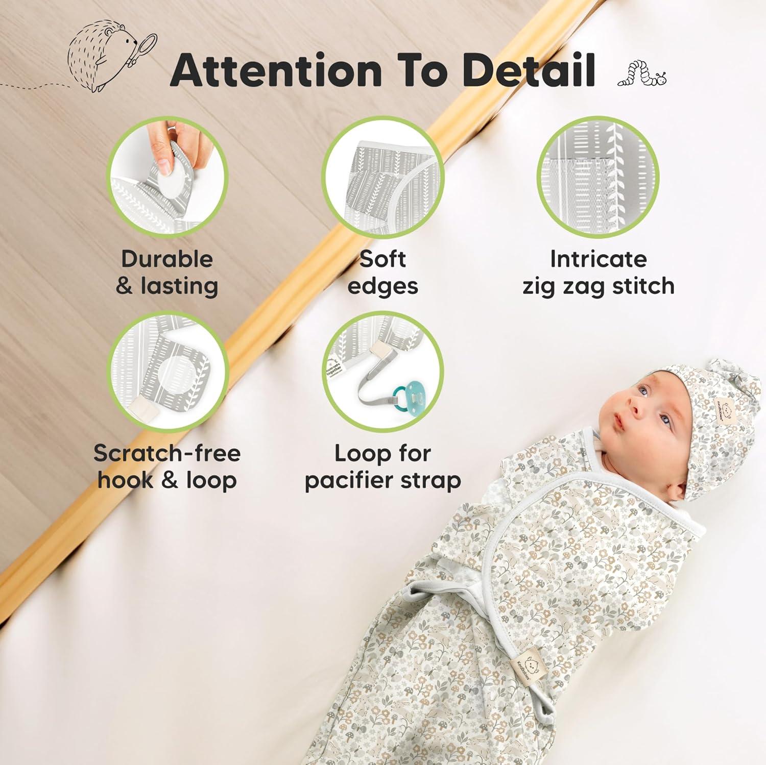Easy to Use – Wrap your baby in just four steps for a snug and secure fit. Paired with matching beanie hats, our machine-washable baby sleep sacks double as adorable swaddles for newborn girls and boys, promoting a safe quality sleep experience.