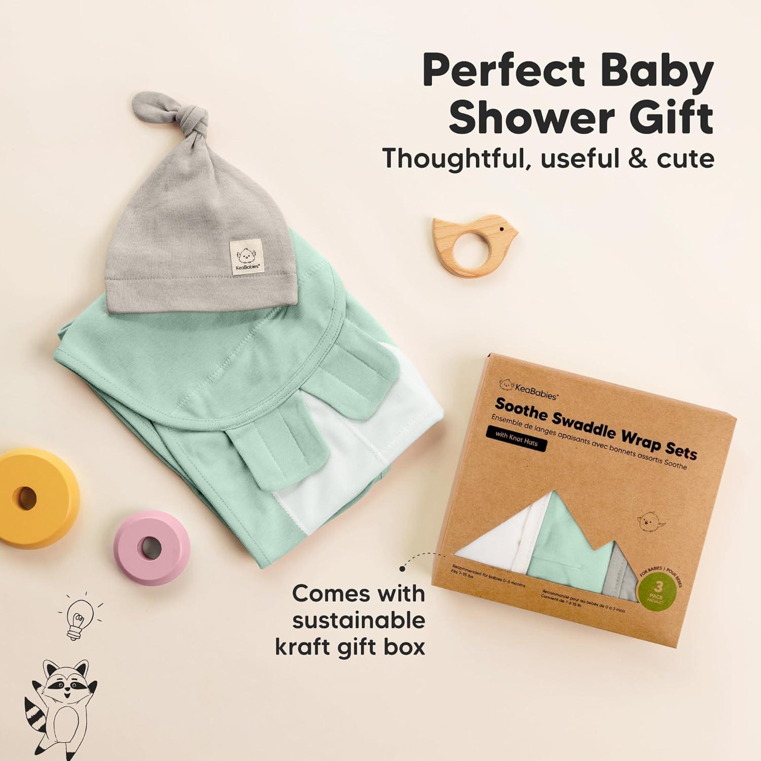 Gift-Ready – KeaBabies Soothe Baby Swaddle Wraps with Knot Hats come in a kraft gift box, perfect as baby showers and registries gift. Thoughtful, practical and easy to use baby boy, baby girl newborn essential for new parents.