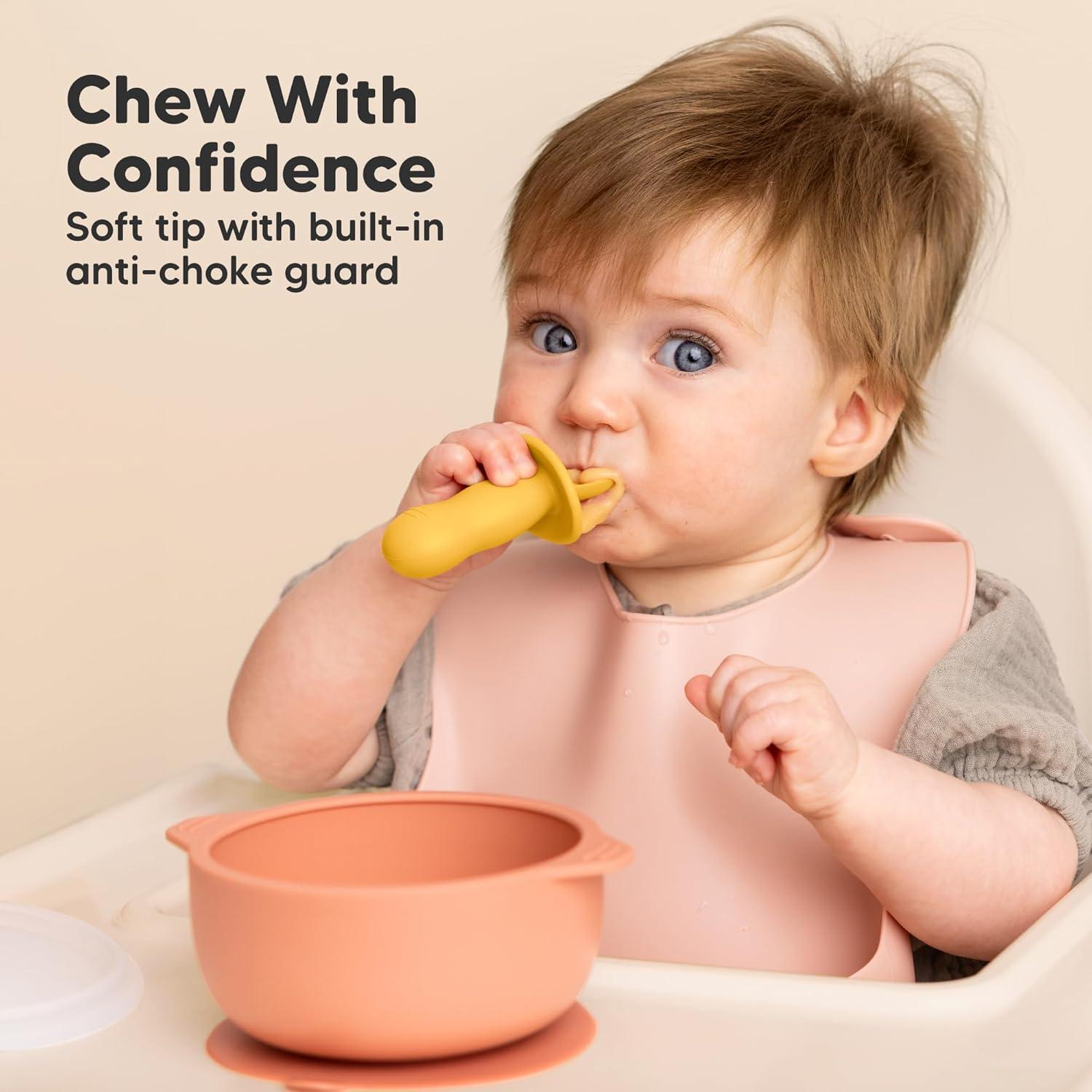 Baby-Safe Design – Crafted for tiny hands, these baby food utensils are suitable for infants 6-18 months. The built-in anti-choke barrier & ergonomic grip handle allow your baby to explore new foods safely, perfect for the first stage BLW.