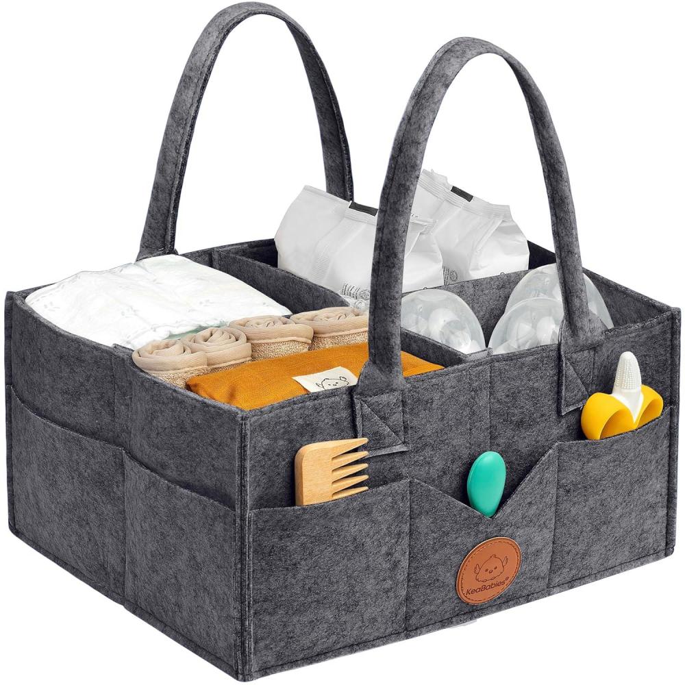 KeaBabies Baby Diaper Caddy Organizer with Handle – Portable Baby Organizers and Storage for Nursery, Changing Table, Large Travel Car Caddy, Girls, Boys Shower Gift Basket, New Mom Gifts(Mystic Gray)(Mystic Gray)