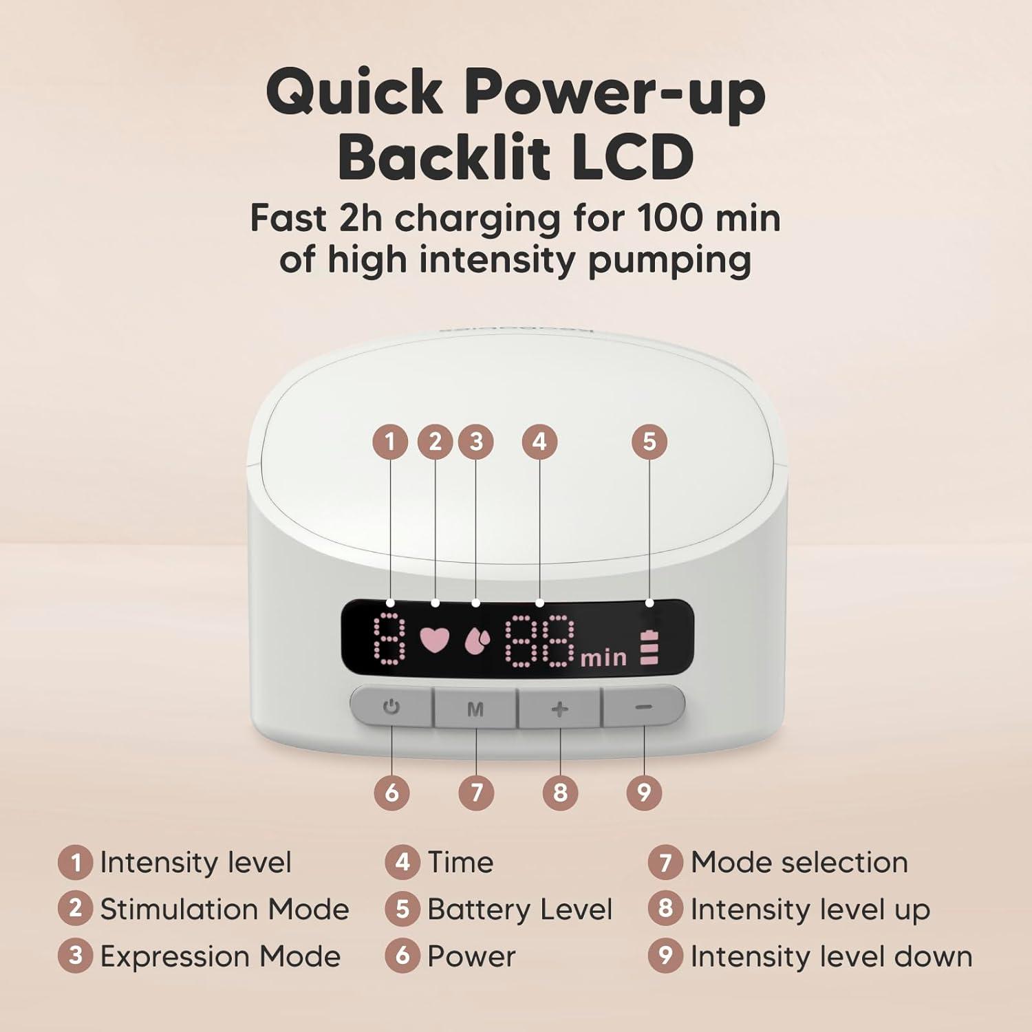 Smart Display – The Pulse Double Breast Pumps' LCD screen allows for easy navigation through modes day or night, even in dark rooms. The auto 20-minute automatic shutdown power-saving feature provides peace of mind for busy breast feeding moms.