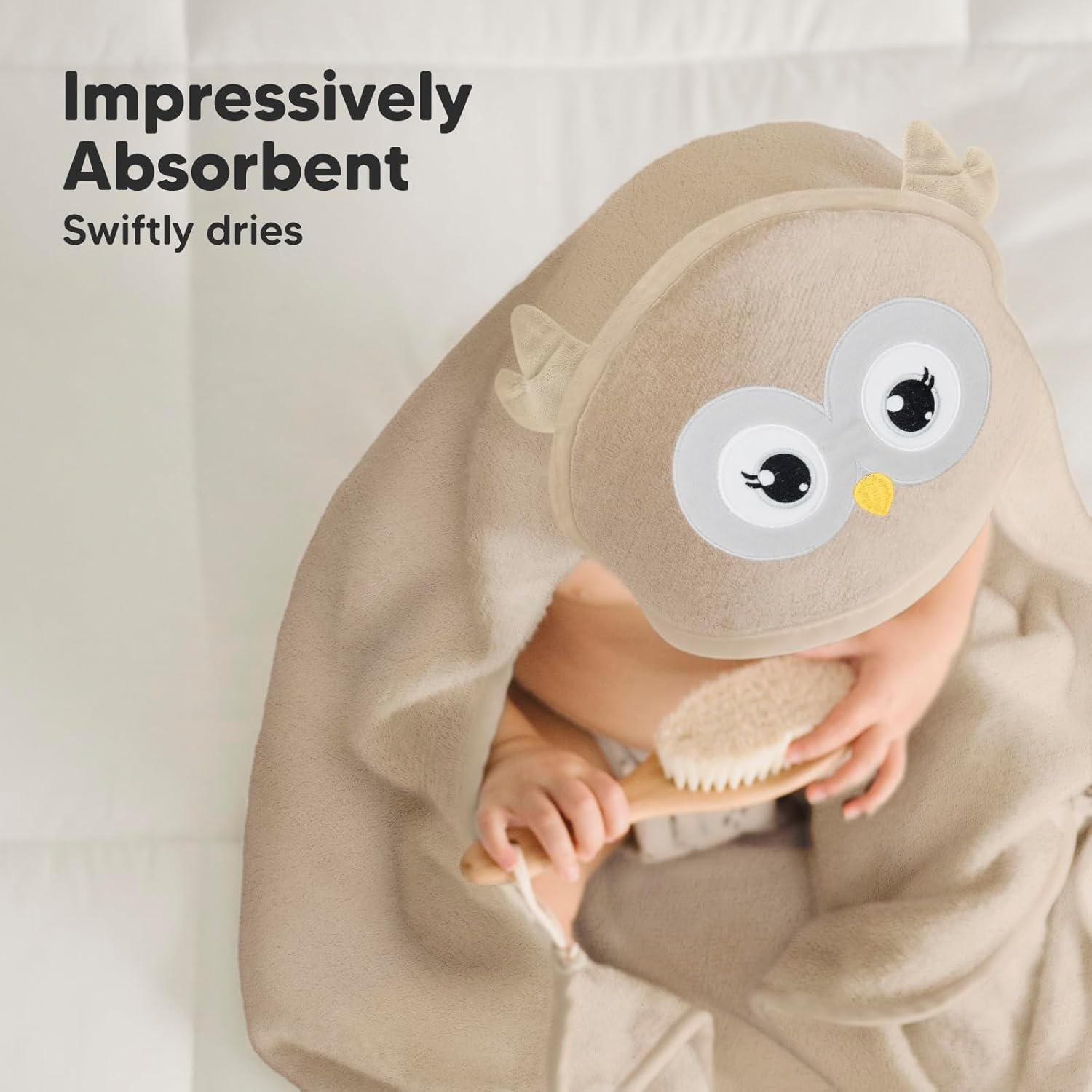 KeaBabies Hooded Baby Towel for Newborn - Viscose Derived from Bamboo Large Baby Bath Towels with Hood for Boys, Girls, Toddler, Extra Absorbent & Soft Newborn Bath Essentials (Cat)(Owl)