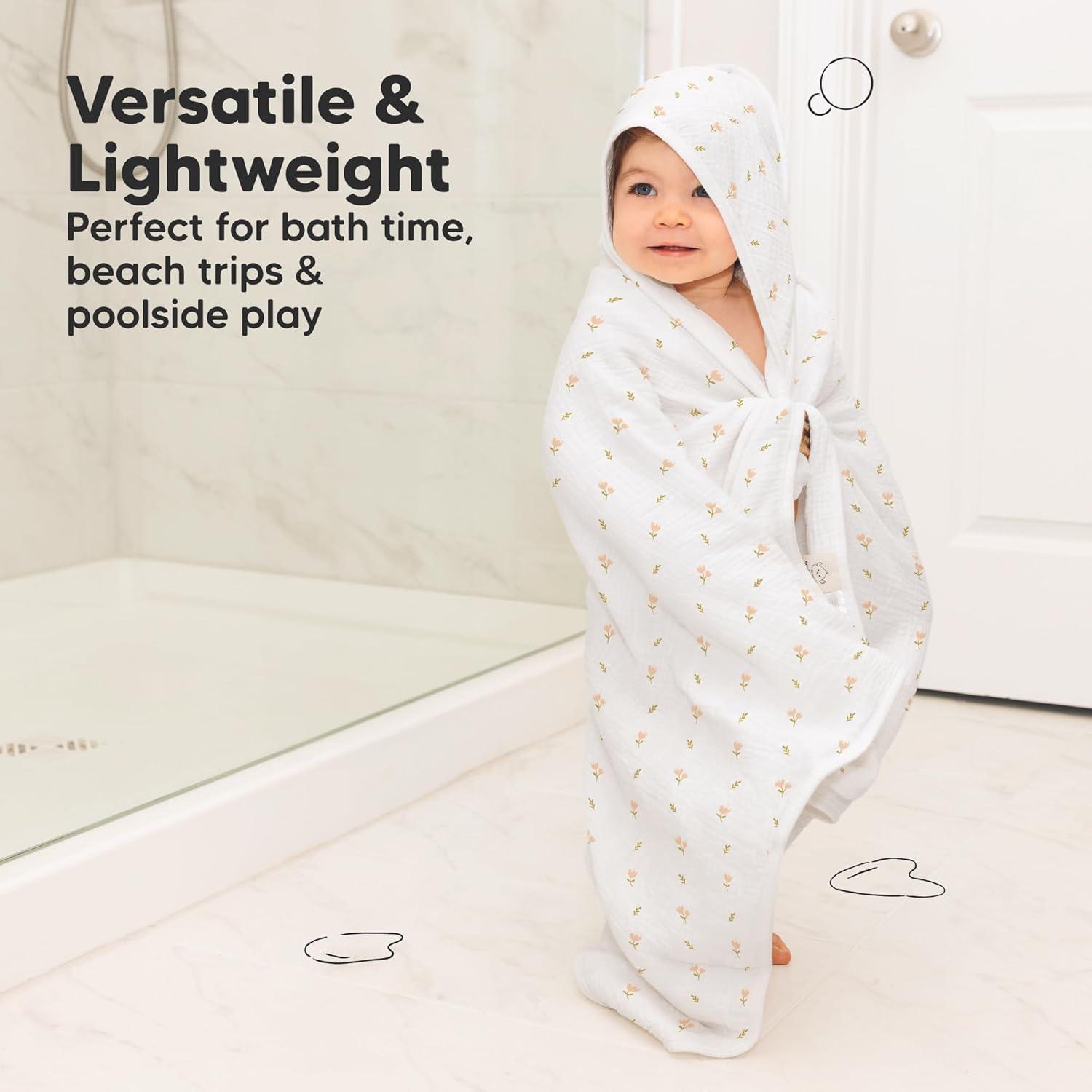 Warm & Gentle – More than a baby towel, the Lyra Hooded Towel is a bath-time buddy. With 4-layers of extra absorbent premium muslin, drying off is quick, warm and gentle. This baby girl bath towel offers the softest embrace, as soothing as a lullaby.