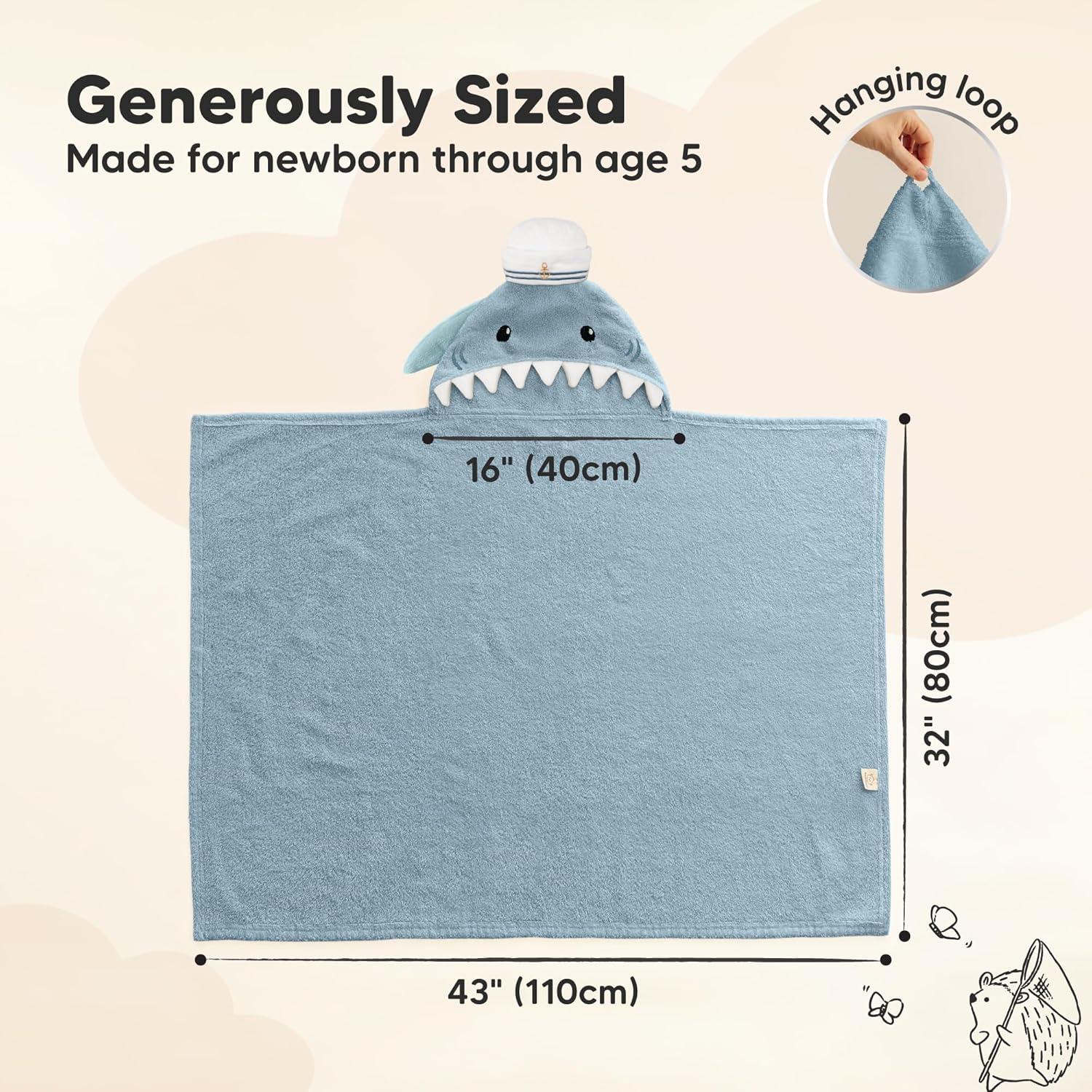 KeaBabies Organic Baby Towel with Hood for Girls, Boys - Soft, Absorbent, 100% Cotton Hooded Baby Towels for Newborns, Infants, Large Hooded Bath Towels for Babies, Kids, Toddler 1-3 (Skipper)(Skipper)