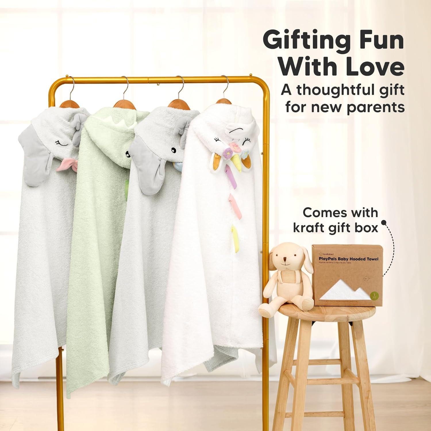 Adorable Gift – Steal the show with the gender-neutral PlayPals Baby Towels with hood for boy and girl, featuring cute animal details. Packaged in a kraft box, this bath towel is the ideal baby shower gift for new parents, bringing warmth & cuteness.
