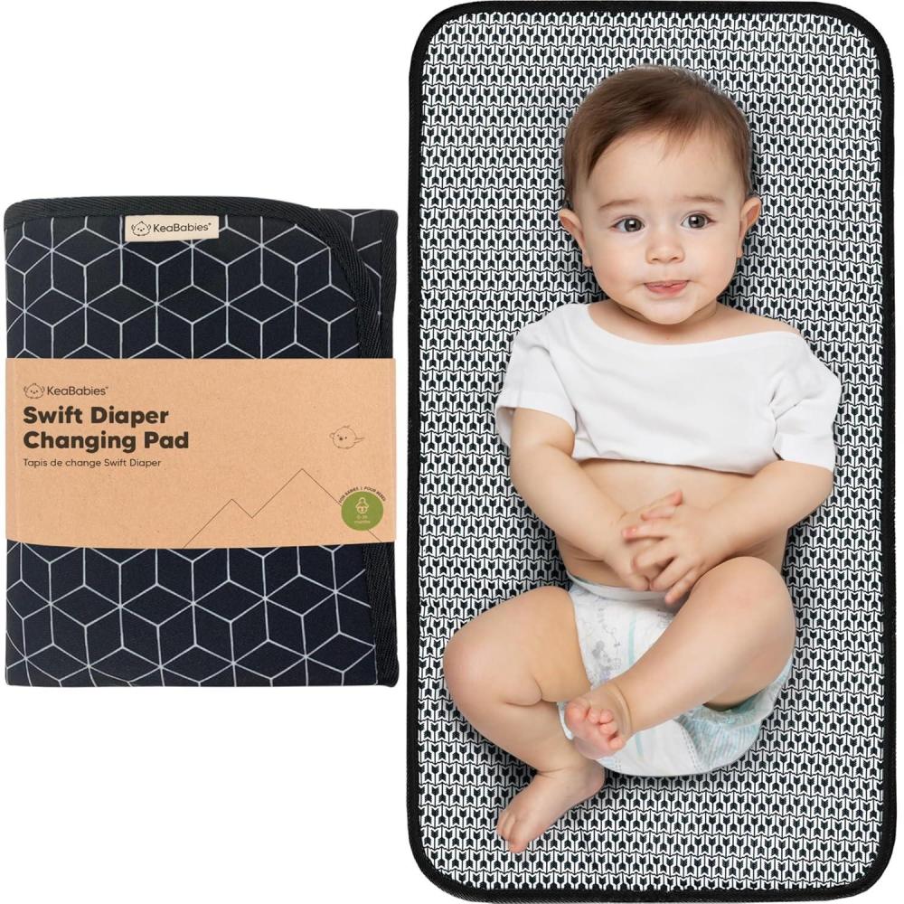 KeaBabies Portable Diaper Changing Pad, Easy Wipe Clean – Foldable Waterproof Baby Changing Mat for Diaper Bag, Compact, Lightweight, 25×13 Newborn, Infant, Baby Changer Travel Essential (Black Geo)(Black Geo)