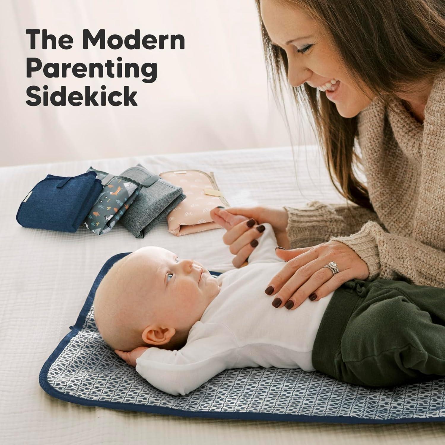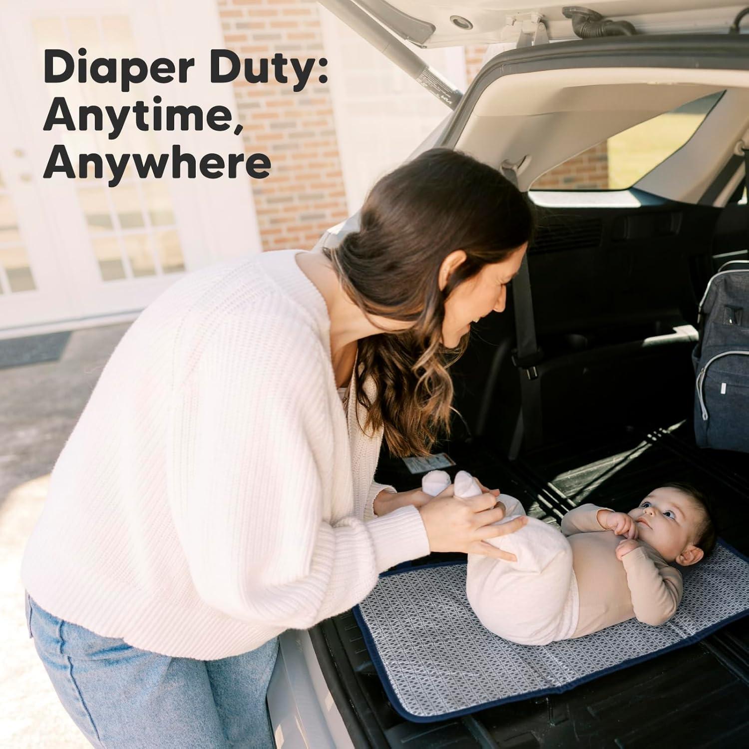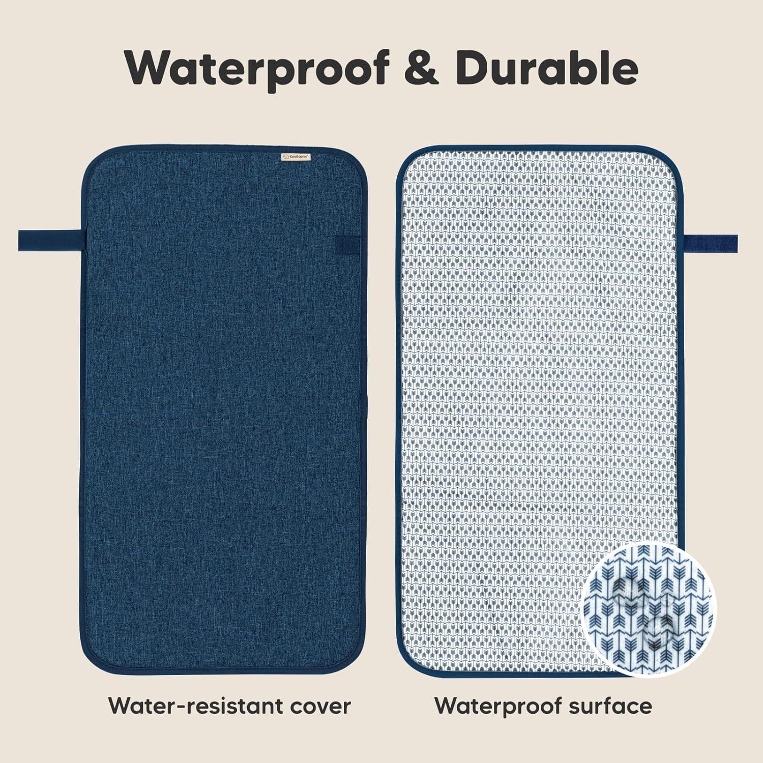 KeaBabies Portable Diaper Changing Pad, Easy Wipe Clean - Foldable Waterproof Baby Changing Mat for Diaper Bag, Compact, Lightweight, 25x13 Newborn, Infant, Baby Changer Travel Essential (Black Geo)(Navy Blue)