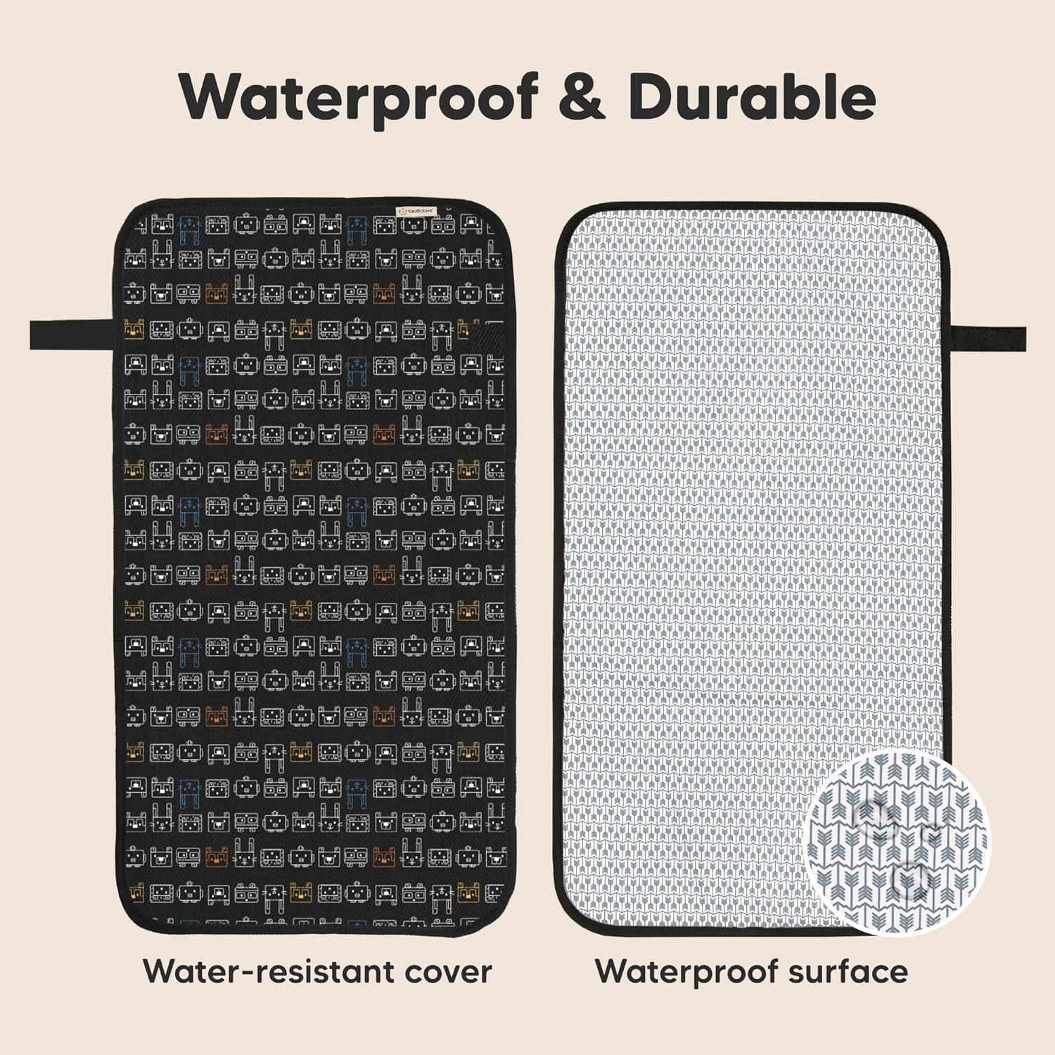 KeaBabies Portable Diaper Changing Pad, Easy Wipe Clean - Foldable Waterproof Baby Changing Mat for Diaper Bag, Compact, Lightweight, 25x13 Newborn, Infant, Baby Changer Travel Essential (Black Geo)(Pixel)