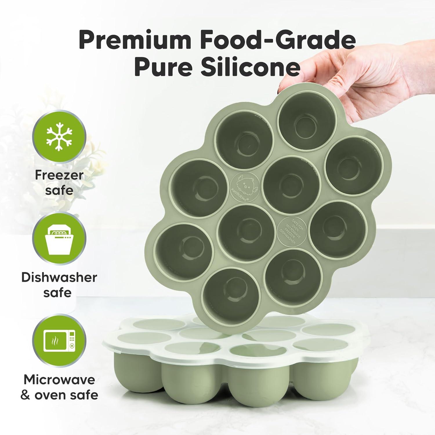 KeaBabies Silicone Food Freezer Trays with Lid, 2oz x 10 Pods Baby Food Storage Containers, Easy Puree Meal Prep, Breast Milk Silicone Freezer Molds, Dishwasher,Microwave Safe,BPA-Free(Blossom)(Sage)